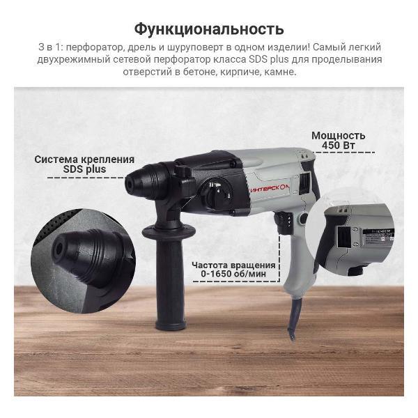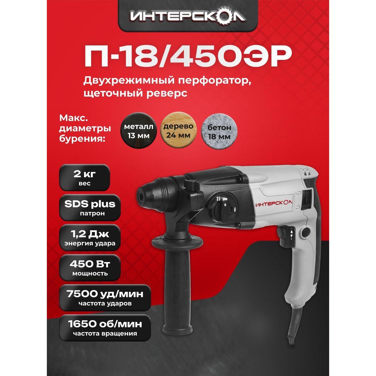Вы можете купить Перфоратор ИНТЕРСКОЛ П-18/450ЭР 66.0.3.00 в магазинах М.Видео по доступной цене. Перфоратор ИНТЕРСКОЛ П-18/450ЭР 66.0.3.00: подробное описание, фото и отзывы реальных покупателей, характеристики, возможность скачать инструкции и подобрать аксессуары.