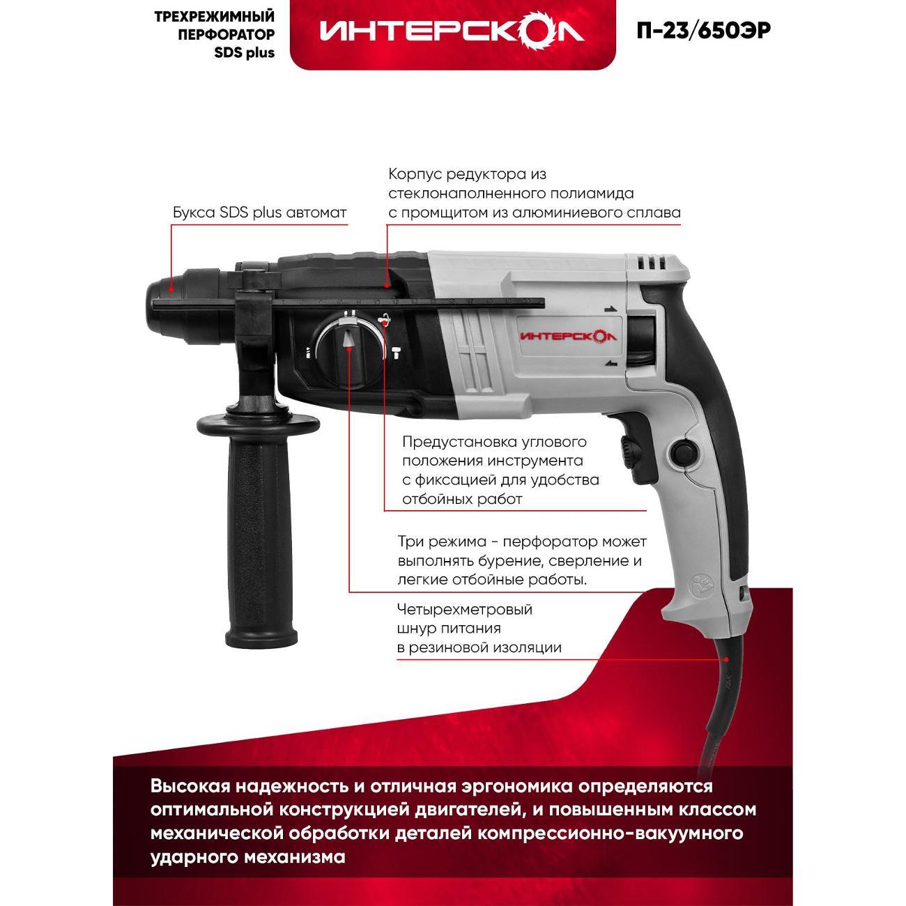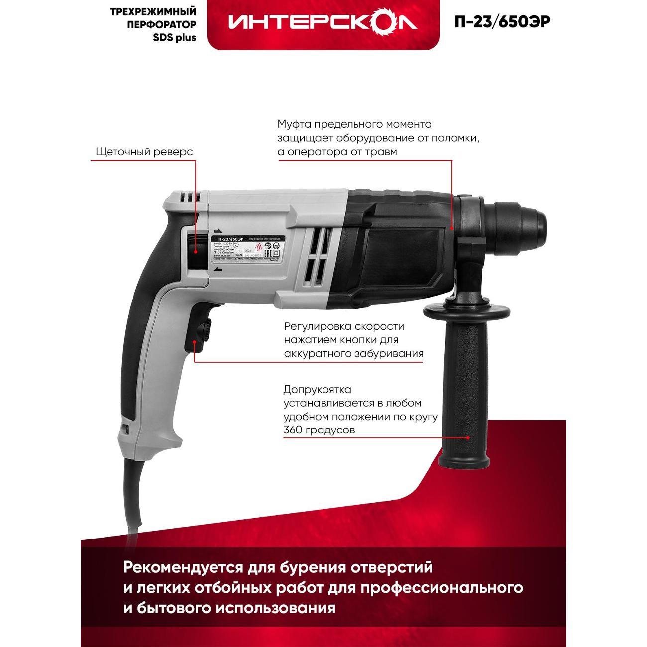 Вы можете купить Перфоратор ИНТЕРСКОЛ П-23/650ЭР 593.1.0.70 в магазинах М.Видео по доступной цене. Перфоратор ИНТЕРСКОЛ П-23/650ЭР 593.1.0.70: подробное описание, фото и отзывы реальных покупателей, характеристики, возможность скачать инструкции и подобрать аксессуары.