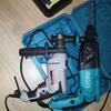 Корпус с антивибрационной системой оснащен дополнительной рукояткой для безопасности во время работы. Кнопка включения блокируется. Установлен регулятор глубины сверления, что позволяет задать требуемую величину. Для защиты от заклинивания устанавливается предохранительная муфта. Длина сетевого кабеля — 2 м. Вес составляет 4,8 кг. В комплекте с инструментом идут три бура, два долота и ударопрочный кейс.