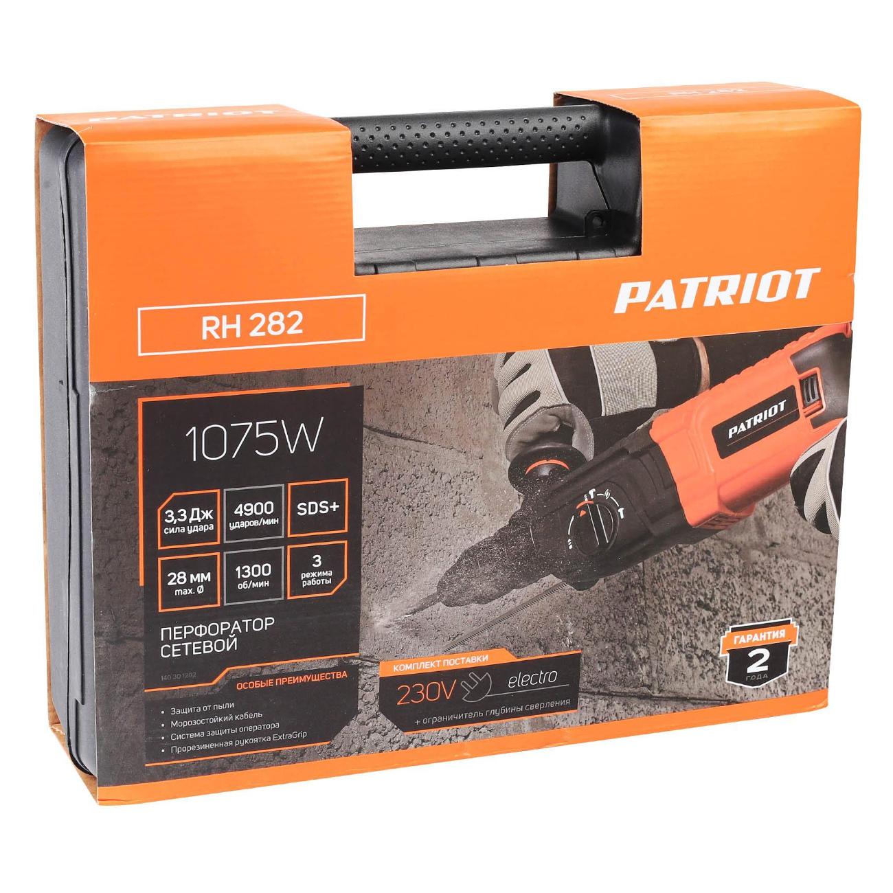 Перфоратор Patriot RH 282 оснащен быстрозажимным патроном, благодаря чему замена оснастки осуществляется бесключевым способом. Максимальное число ударов в минуту составляет 4900 уд/мин.