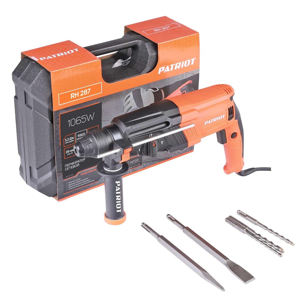 Недавно я купил перфоратор Patriot RH 287 для ремонта в квартире. Он мне очень понравился, потому что он мощный, удобный и надежный. Он легко сверлит бетон, кирпич и дерево, а также может работать в режиме долбления. У него есть защита от пыли, реверс, фиксация кнопки включения и ограничитель глубины сверления. В комплекте идут буры и долота разных размеров, а также кейс для хранения. Перфоратор имеет хороший дизайн и качественный корпус. Я доволен покупкой и рекомендую этот инструмент всем, кто ищет профессиональный перфоратор по доступной цене. Он стоит своих денег и отлично справляется с любыми задачами.