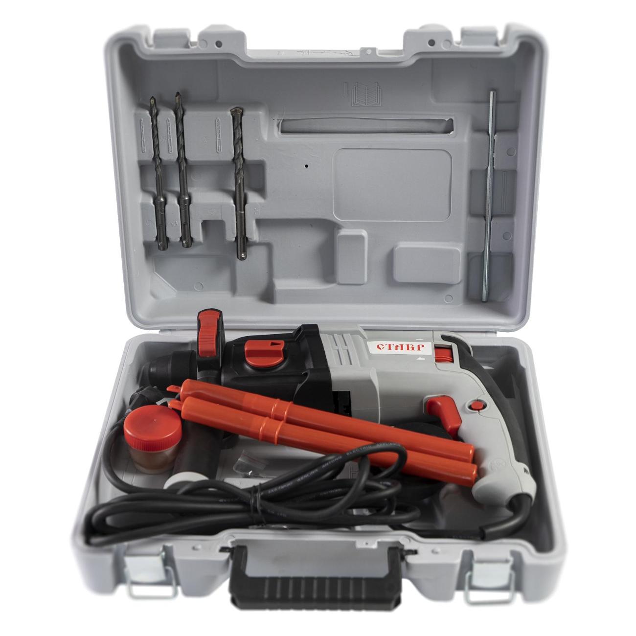 Бытовой перфоратор «Ставр» ПЭГ-680М работает с максимальным уровнем шума 88 дБ от электросети по кабелю длиной 3 м. Потребляемая мощность щеточного двигателя составляет 680 Вт. Он расположен горизонтально.
