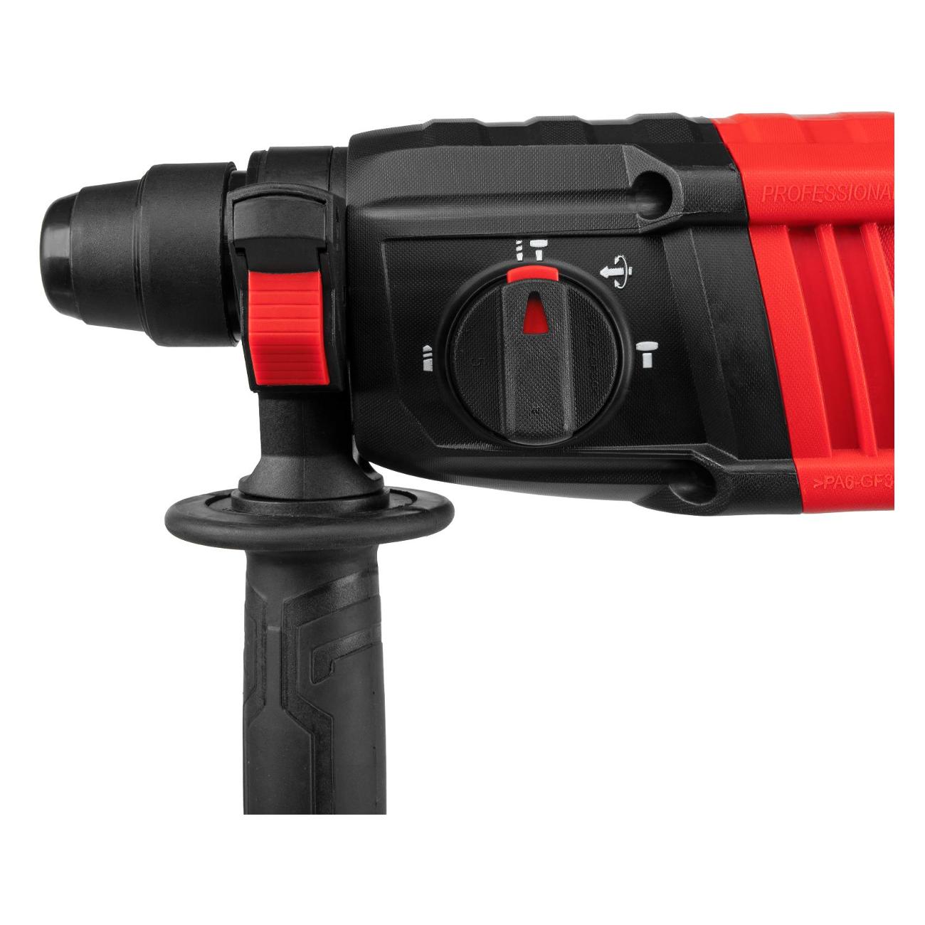 Режимов три плюс еще долото можно под нужным углом зафиксировать, что удобно, когда зубилом коробку вырубаешь. Переключатель режимов туговат, но это, говорят, на всех новых, со временем разрабатывается. Рукоятка резиновая удобная, вибрацию гасит хорошо.
