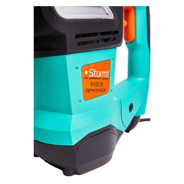 Перфоратор Sturm! RH2518 с типом патрона SDS-Plus может просверлить в бетоне отверстие, диаметр которого не будет превышать 68 мм. Максимальная скорость редуктора достигает 900 об/мин. Количество ударов можно регулировать от 0 до 4400 в минуту. Встроена предохранительная муфта. Устройство оснащено щеточным двигателем.