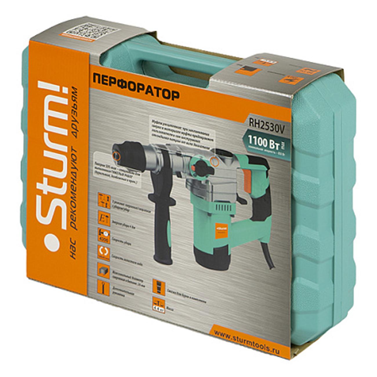 Перфоратор Sturm! RH2530V работает в трех режимах: сверление, сверление с ударом и без сверления. Комплектуется прибор дополнительной рукояткой для фиксации инструмента, смазкой и кейсом для удобной транспортировки.