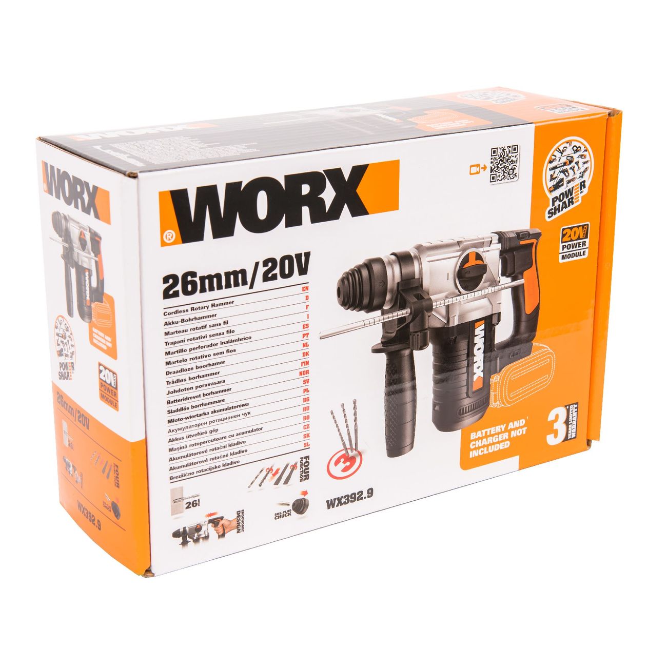 Worx WX392.9 совмещает сразу три инструмента: шуруповерт, перфоратор и ударную дрель. У него высокая производительность до 5000 уд./мин и максимальная мощность удара 1,2 Дж. Подходит для работы с материалами различной плотности: кирпичом, бетоном, сталью, древесиной.
