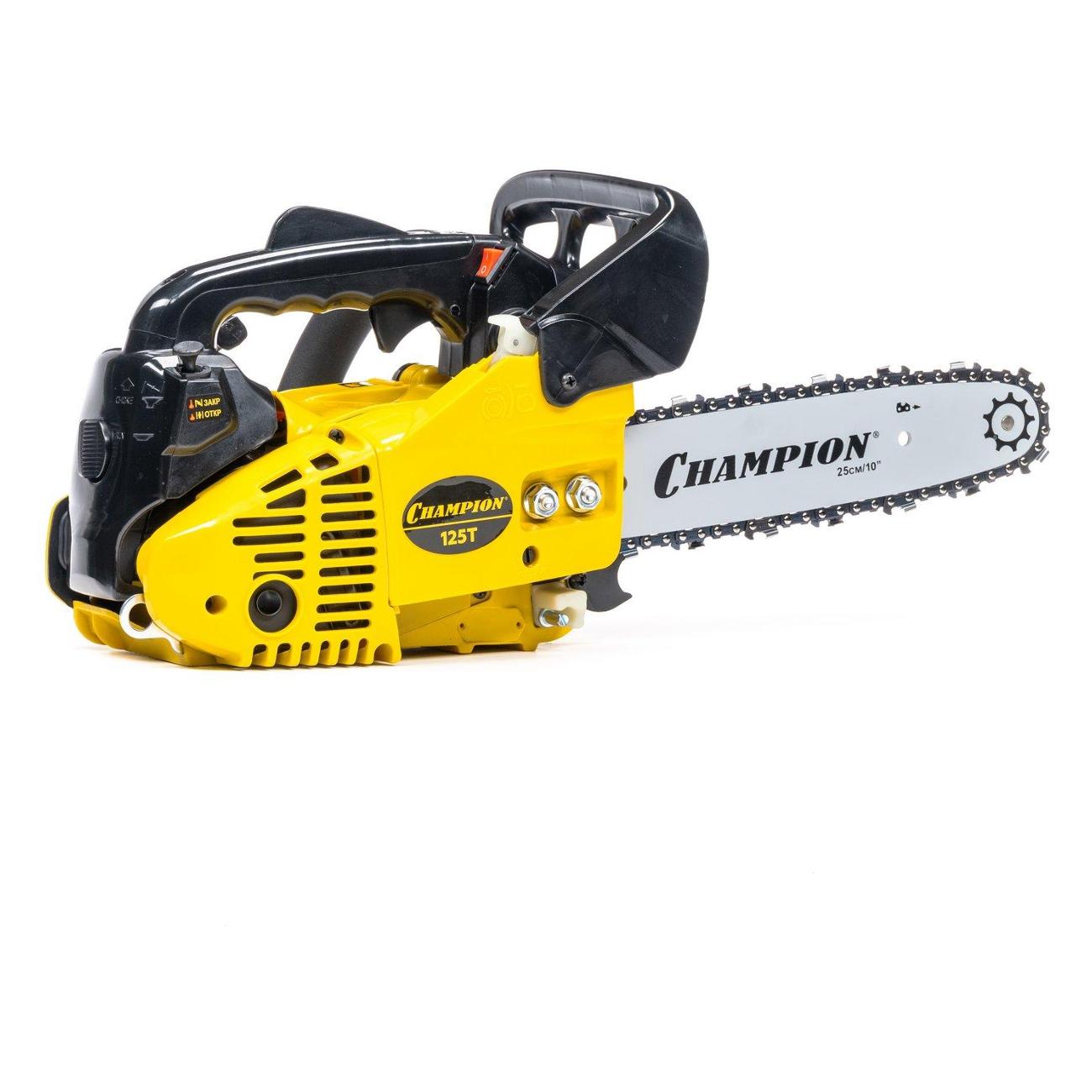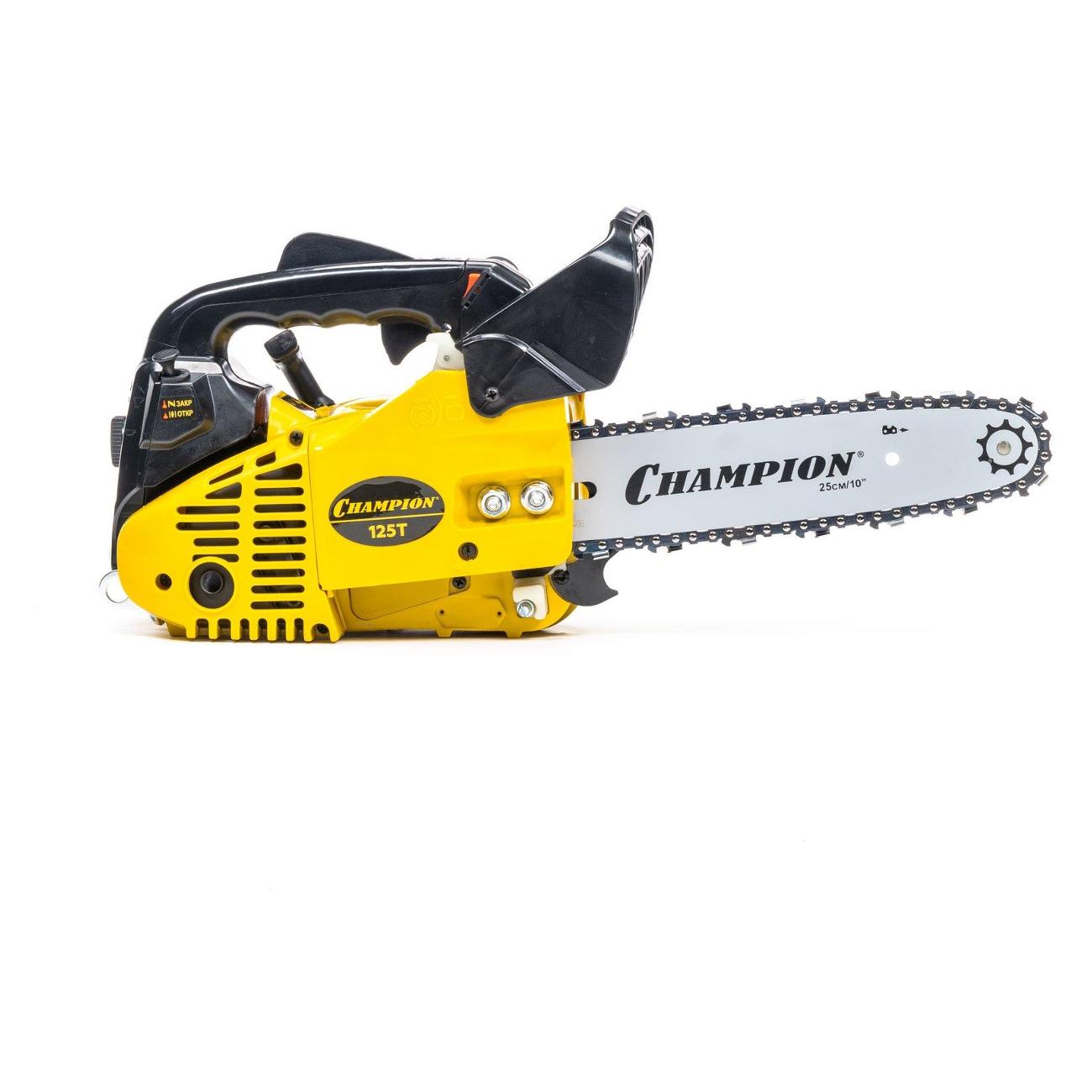 Вы можете купить Пила бензиновая Champion 125T-10 в магазинах М.Видео по доступной цене. Пила бензиновая Champion 125T-10: подробное описание, фото и отзывы реальных покупателей, характеристики, возможность скачать инструкции и подобрать аксессуары.