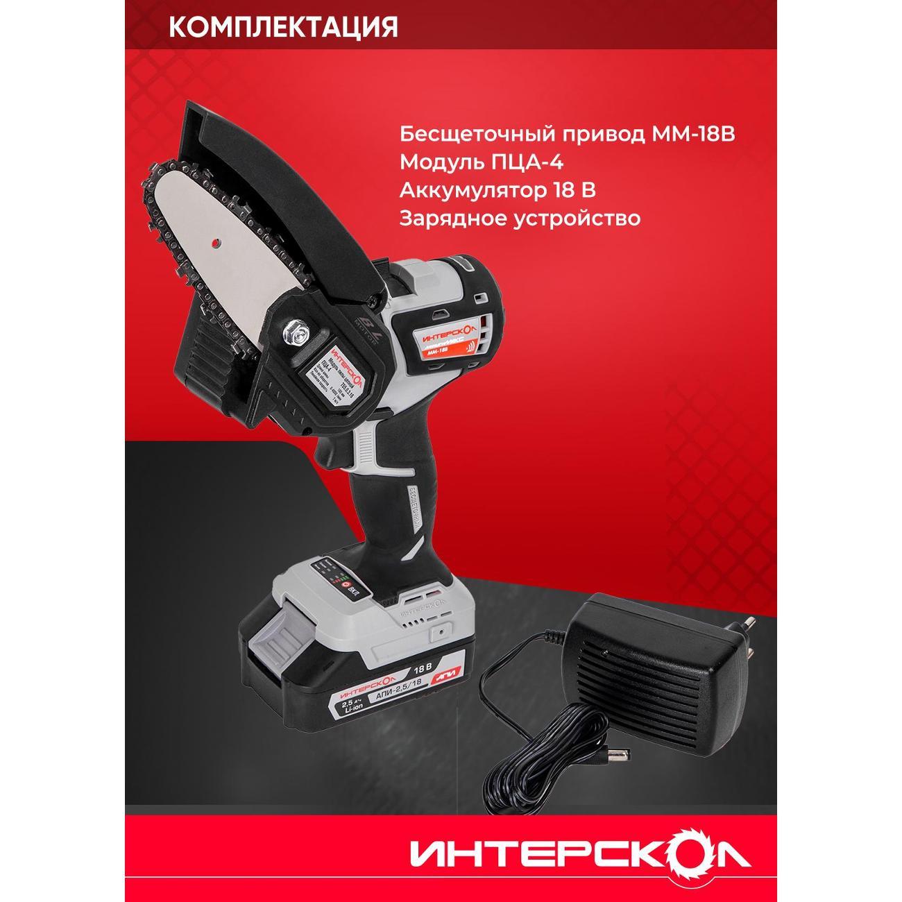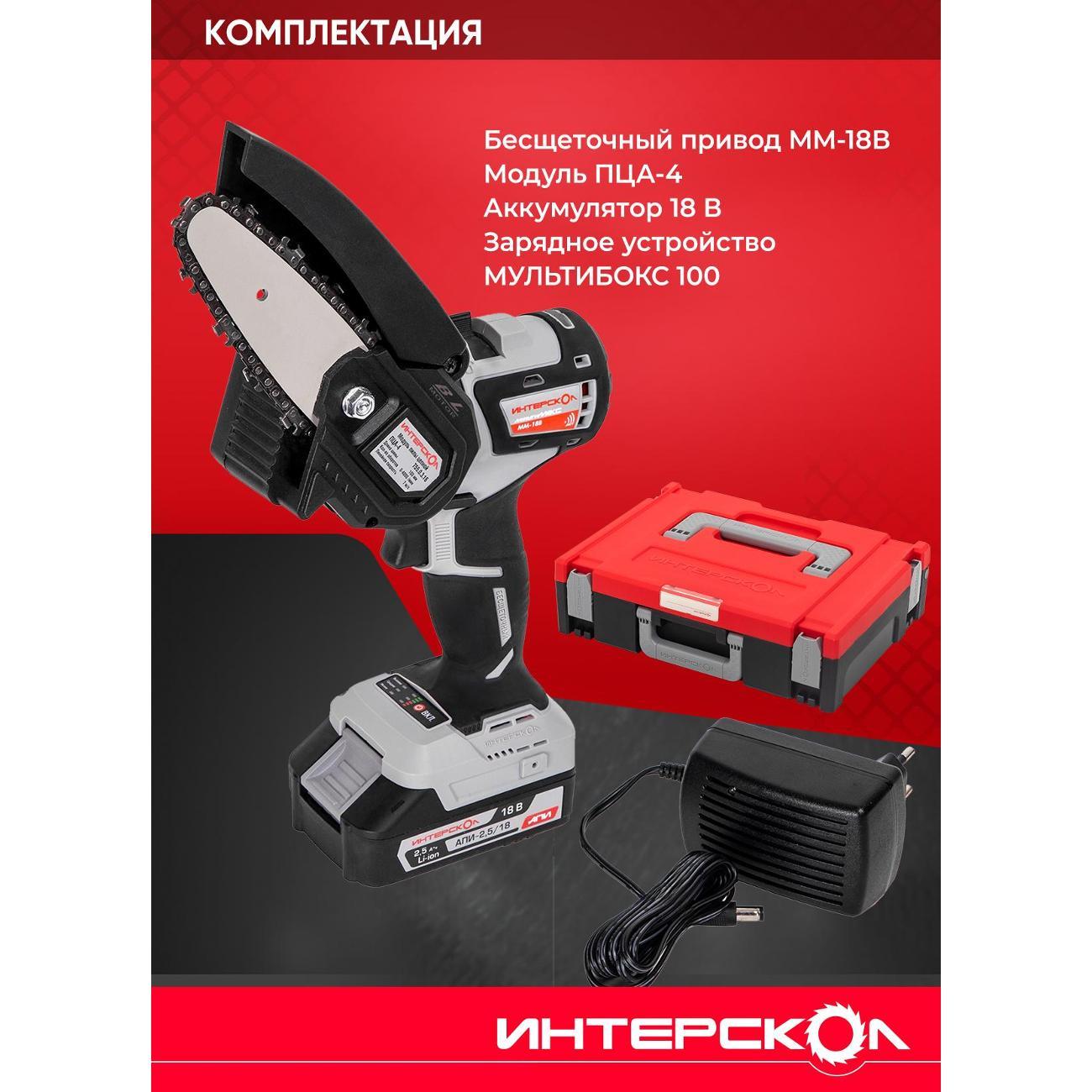 Вы можете купить Пила цепная ИНТЕРСКОЛ ПЦА-4/18ВМ (МБ100, 1 АКБ 2,5 А/ч, ЗУ) в магазинах М.Видео по доступной цене. Пила цепная ИНТЕРСКОЛ ПЦА-4/18ВМ (МБ100, 1 АКБ 2,5 А/ч, ЗУ): подробное описание, фото и отзывы реальных покупателей, характеристики, возможность скачать инструкции и подобрать аксессуары.