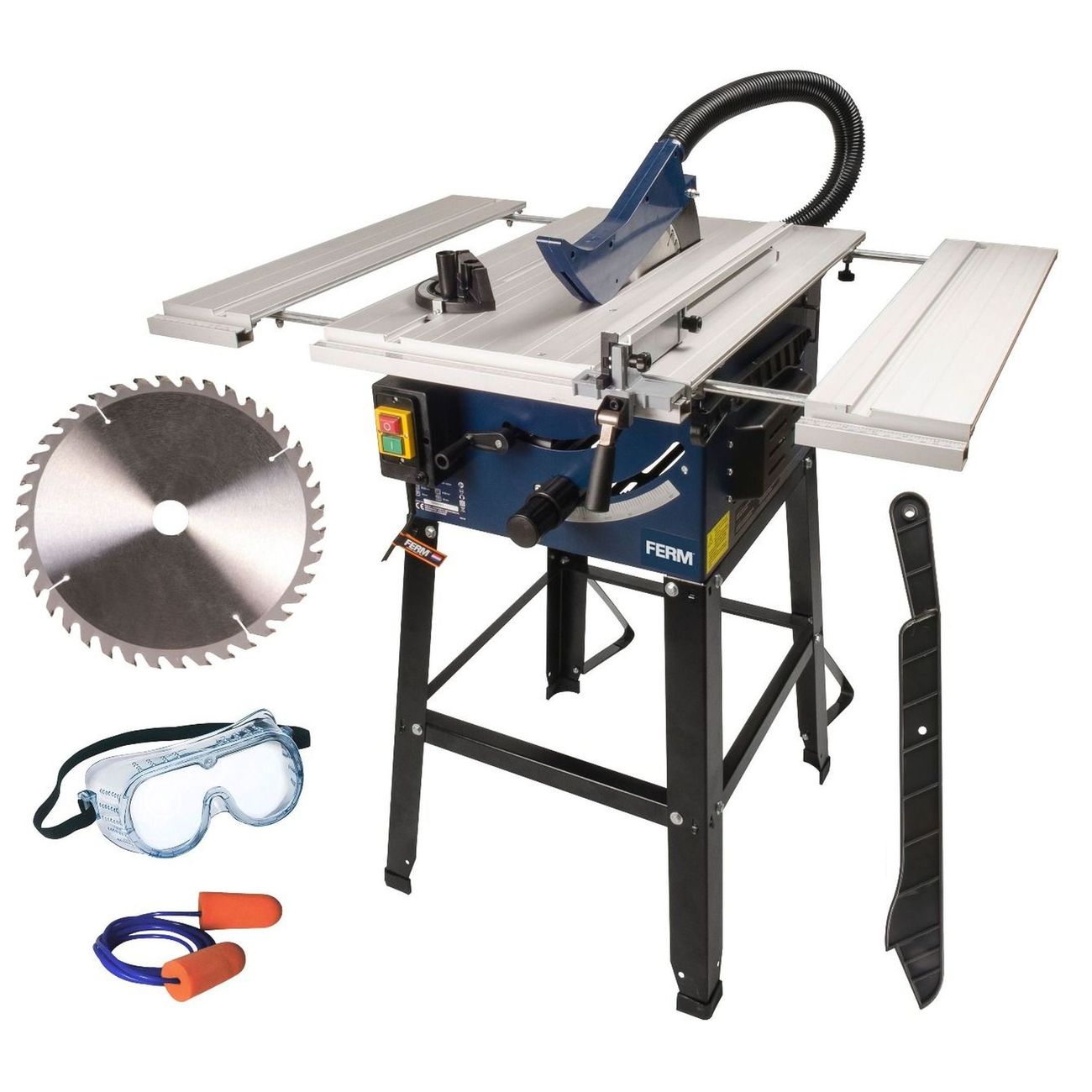 Пила комплектуется столешницей, размер которой регулируется с помощью боковых расширителей. Система защиты от перегрузок предотвращает перегорание устройства и увеличивает срок его службы.