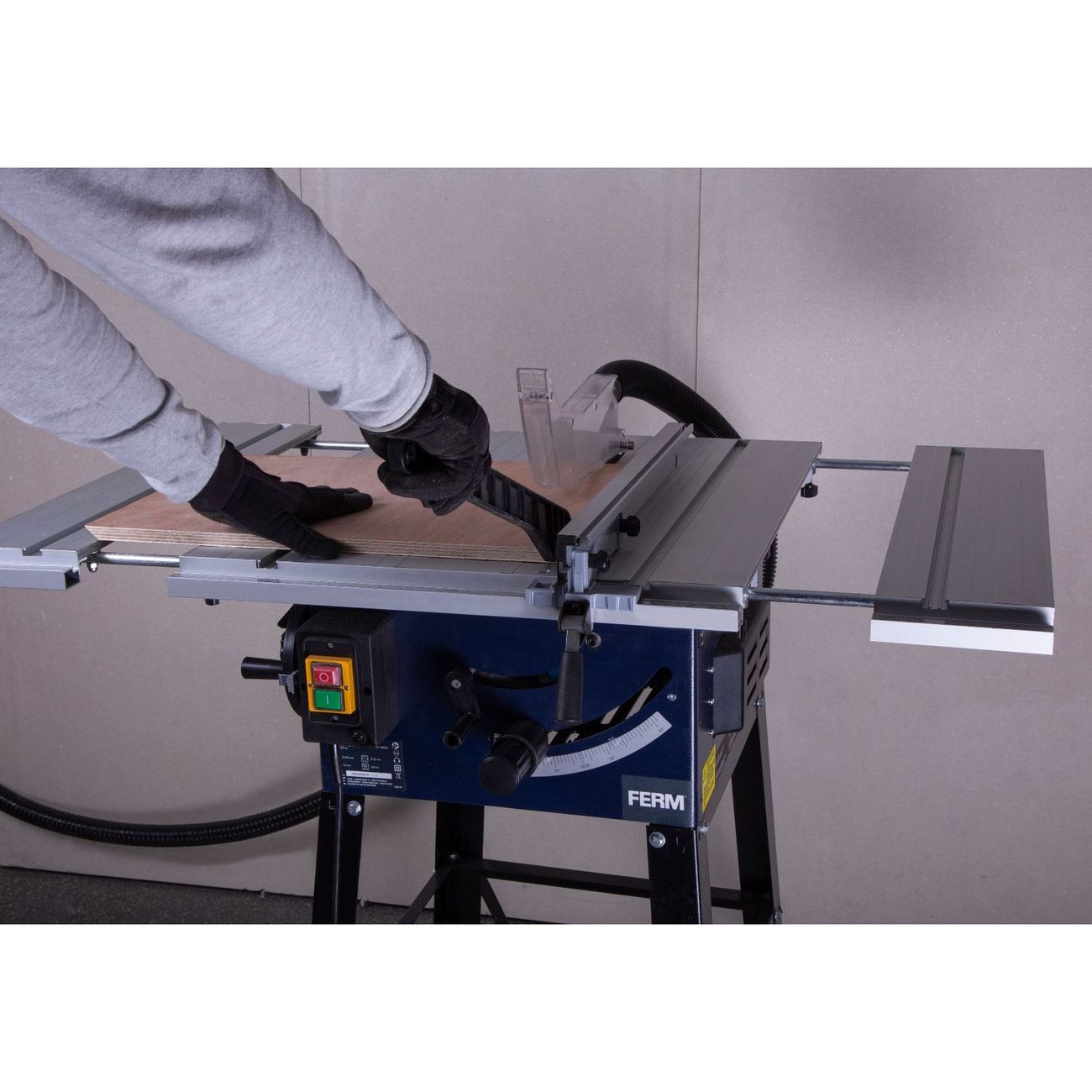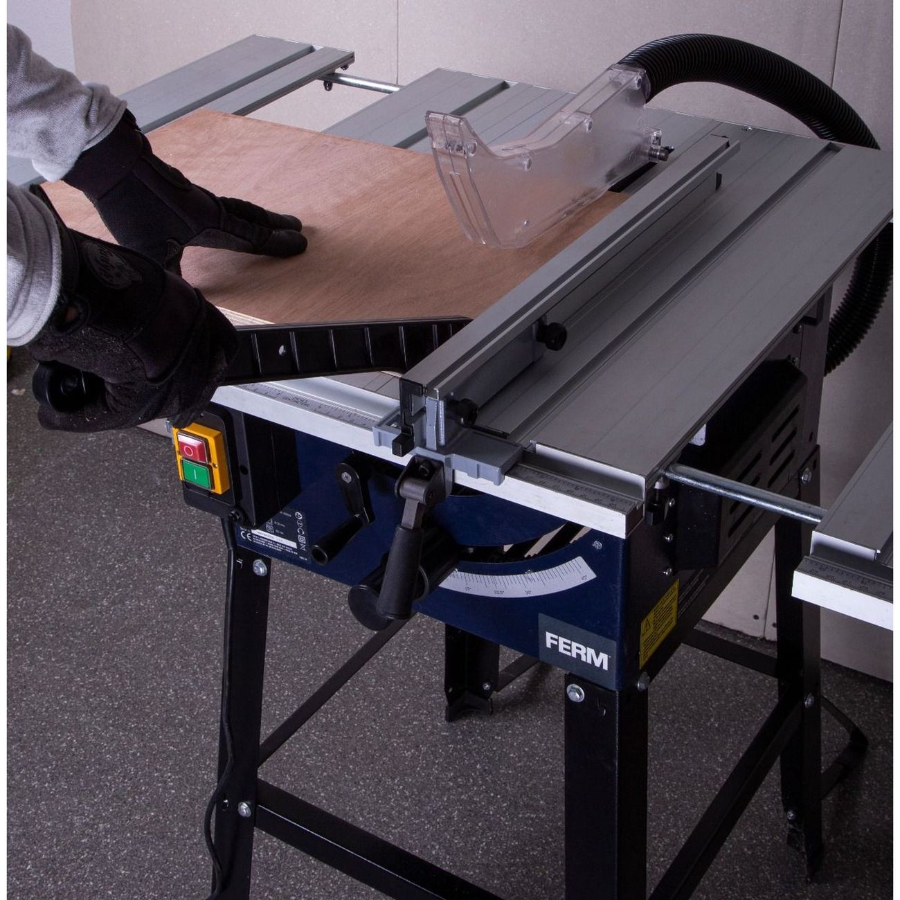 Циркулярная пила Ferm TSM1033 с высокой частотой вращения шпинделя (4700 оборотов в минуту) позволяет быстро распилить заготовку. Металлический диск отличается износостойкостью и сохранением остроты в течение длительного времени.