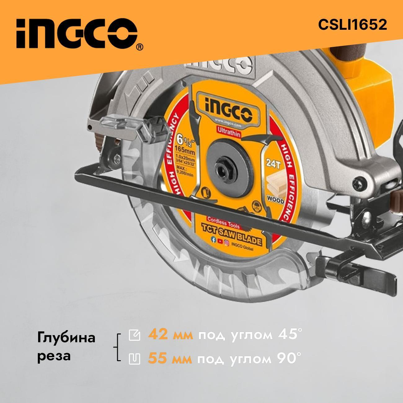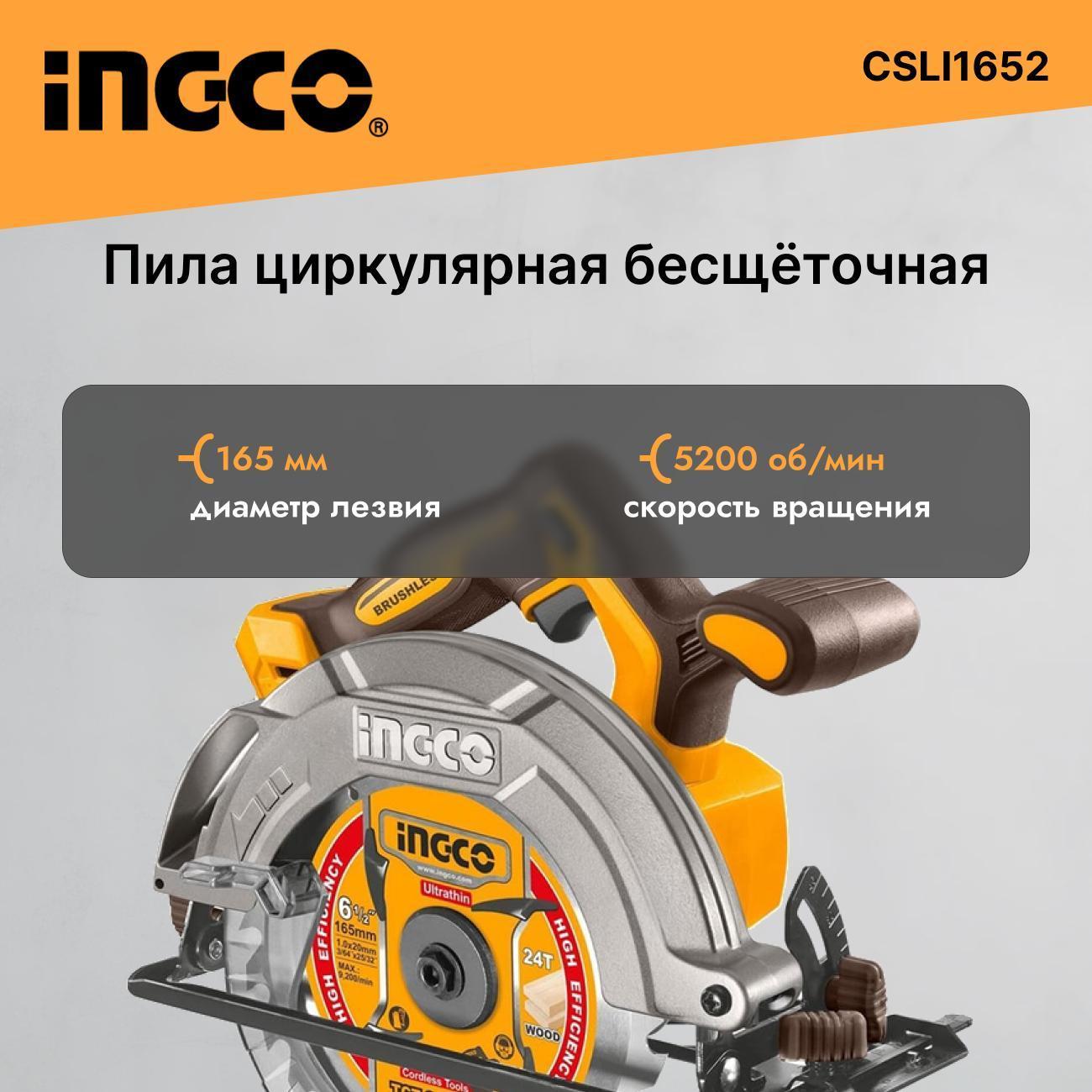 Вы можете купить Пила циркулярная INGCO CSLI1652 в магазинах М.Видео по доступной цене. Пила циркулярная INGCO CSLI1652: подробное описание, фото и отзывы реальных покупателей, характеристики, возможность скачать инструкции и подобрать аксессуары.