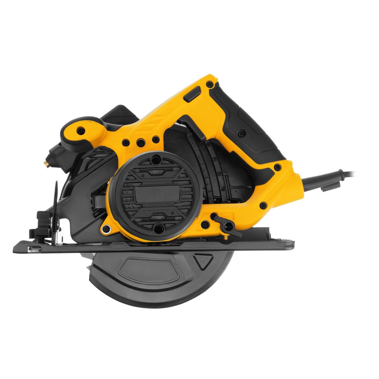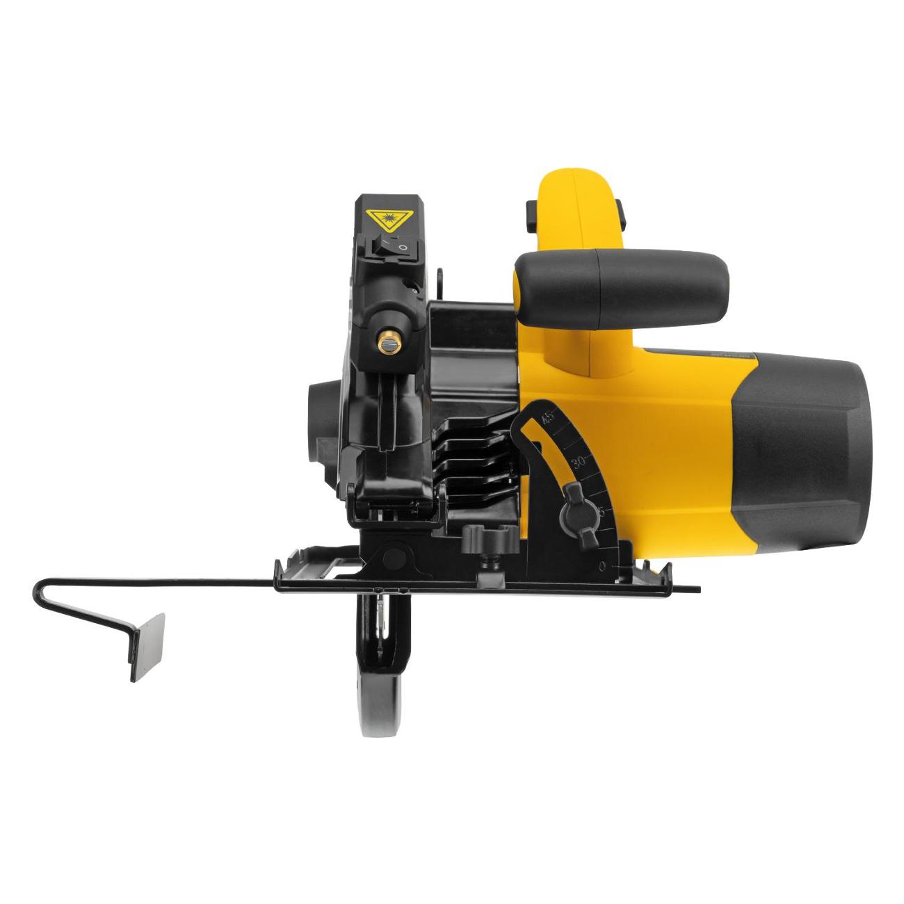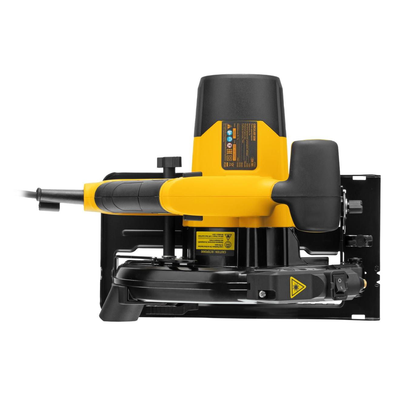 Циркулярная электрическая пила Denzel CSH-185 черно-желтого цвета работает от сети по кабелю длиной 3 м, защищенному от разрыва резиновым покрытием. Инструмент оснащен двигателем мощностью 1,4 кВт, который развивает скорость вращения шпинделя до 5500 об/мин, для работы требуется установка диска диаметром 18,5 см с отверстием под посадку диаметром 30 мм.