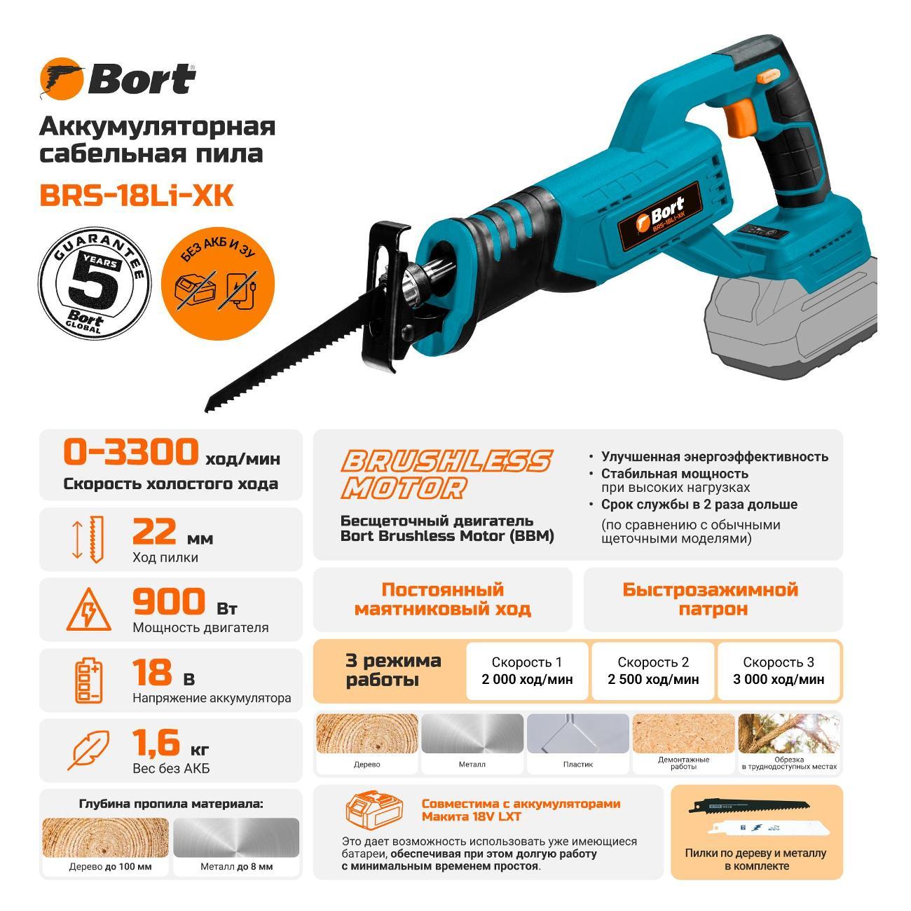 Вы можете купить Пила сабельная Bort BRS-18Li-XK в магазинах М.Видео по доступной цене. Пила сабельная Bort BRS-18Li-XK: подробное описание, фото и отзывы реальных покупателей, характеристики, возможность скачать инструкции и подобрать аксессуары.