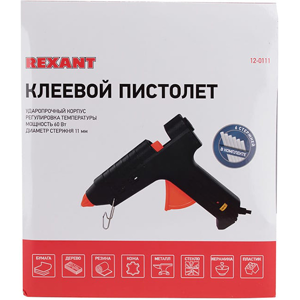 Вы можете купить Пистолет клеевой Rexant 60 Вт, настройка температуры (12-0111) в магазинах М.Видео по доступной цене. Пистолет клеевой Rexant 60 Вт, настройка температуры (12-0111): подробное описание, фото и отзывы реальных покупателей, характеристики, возможность скачать инструкции и подобрать аксессуары.