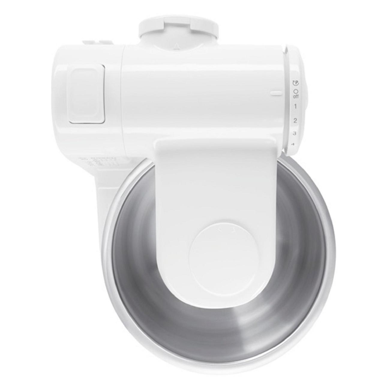 Прибор работает по 3D планетарному принципу вращения насадок Multi-motion-drive (в трех направлениях), что обеспечивает тщательную обработку ингредиентов. Предусмотрена четырехступенчатая регулировка скорости. Прозрачная крышка, фиксируемая на чаше, задерживает брызги. В корпусе предусмотрен отсек для размещения электрошнура длиной около 1 м.