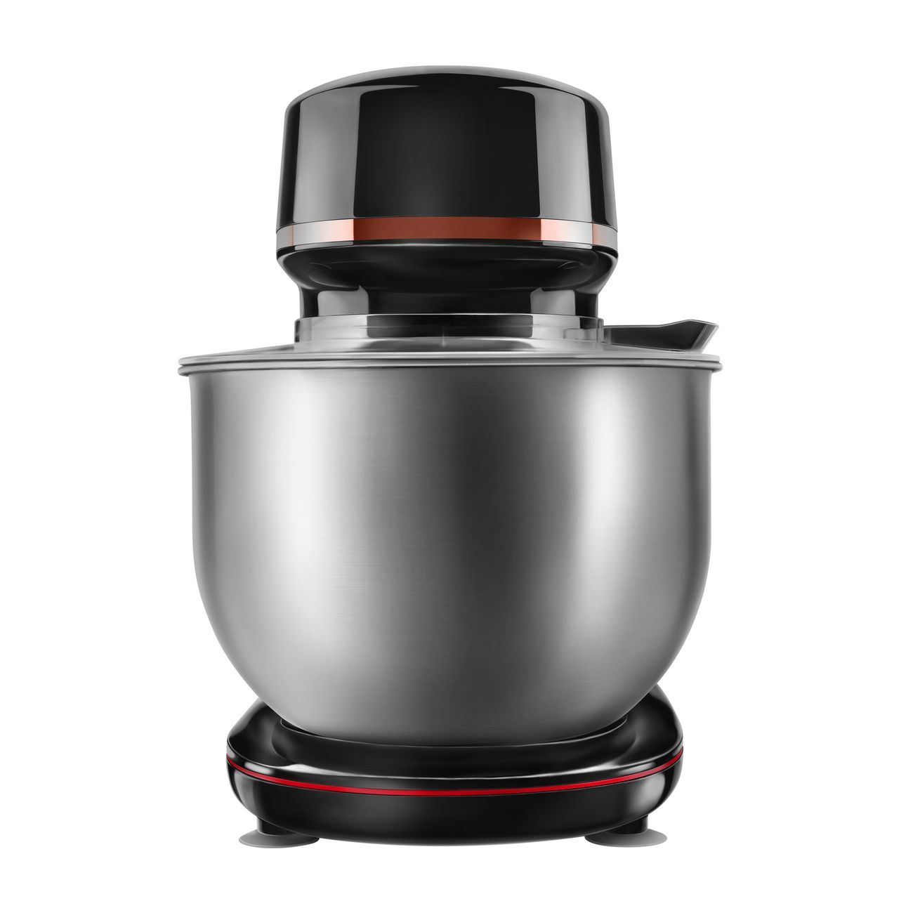 Планетарный режим работы миксера подходит для замешивания однородного теста без комочков. Широкое основание отвечает за устойчивость устройства на столе или другой поверхности. Прорезиненные ножки снижают вибрацию во время работы.