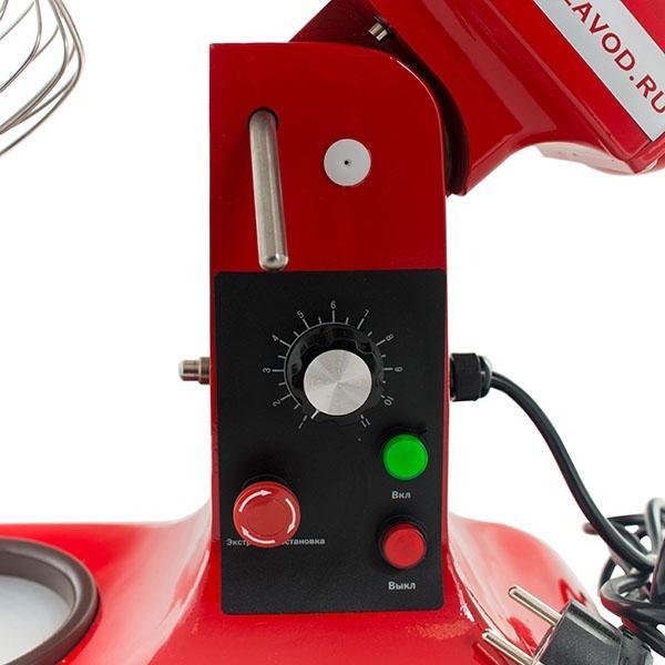 Миксер с механическим типом управления работает на 11 скоростях. Уровень потребляемой мощности составляет 300 Вт. Длина встроенного сетевого кабеля — 160 см. Объем чаши — 7 л. Скорость вращения насадки — до 650 об/мин. Производительность — от 3 до 10 кг/ч.