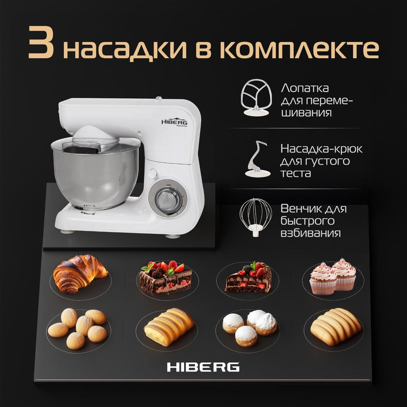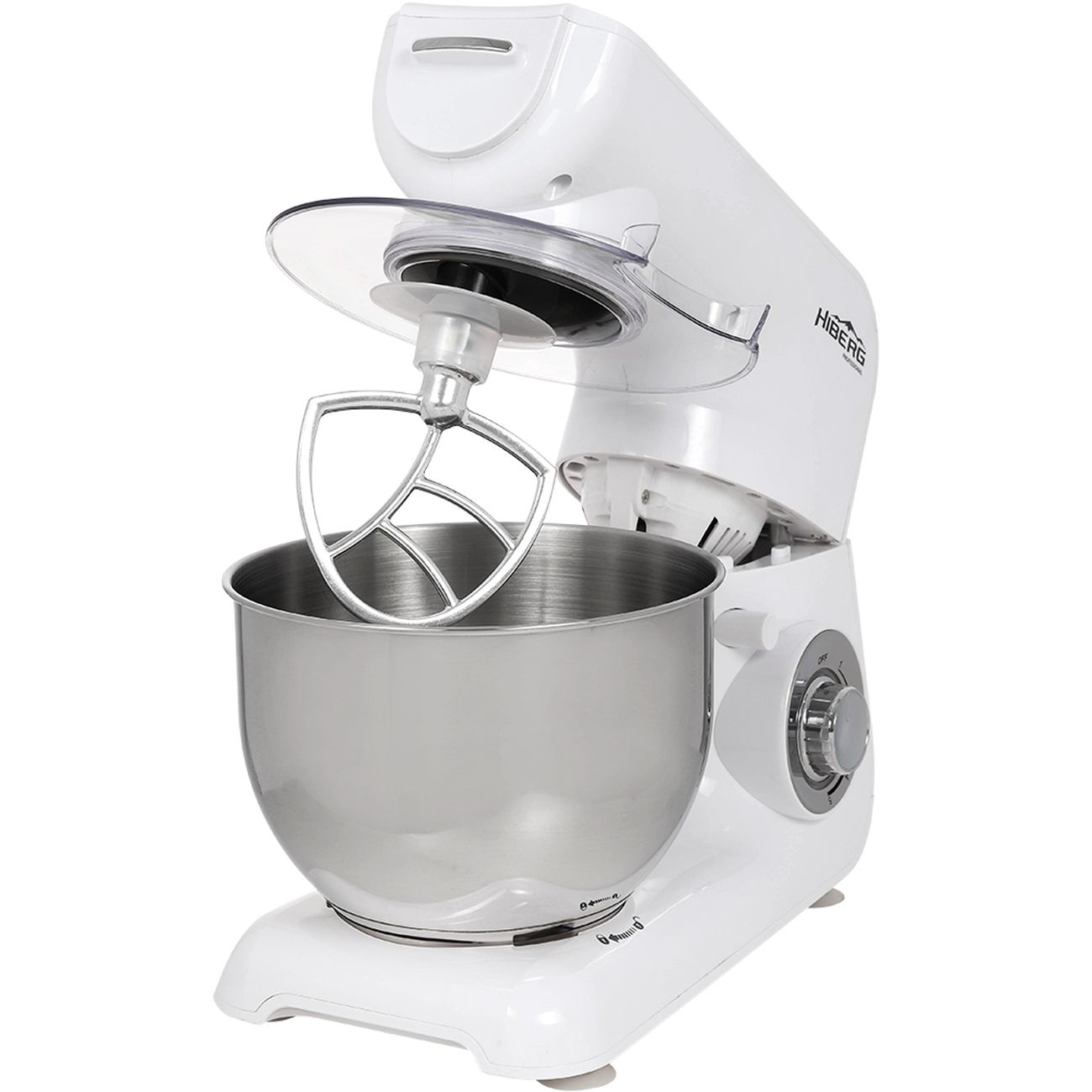 Миксер Hiberg MP 1040W оснащен поворотным регулятором, помогающим корректировать скорость взбивания или замешивания теста. В чашу из нержавеющей стали помещается до 4 л ингредиентов. Специальное отверстие позволяет загружать продукты в процессе эксплуатации. В наборе поставляются лопатка и три насадки, для изготовления которых использован прочный и устойчивый к коррозии металл.