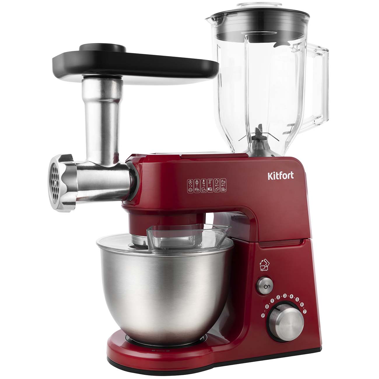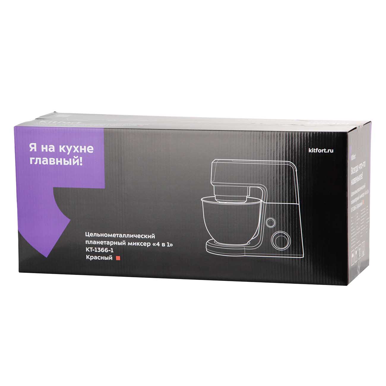 Миксер Kitfort КТ-1366-1 создан по принципу «четыре в одном». Он дополнен мясорубкой, блендером и комбайном, поэтому его можно использовать, чтобы делать фарш для котлет и голубцов, измельчать и смешивать ингредиенты, готовить тесто и выполнять другие кулинарные операции.