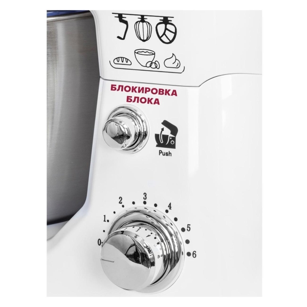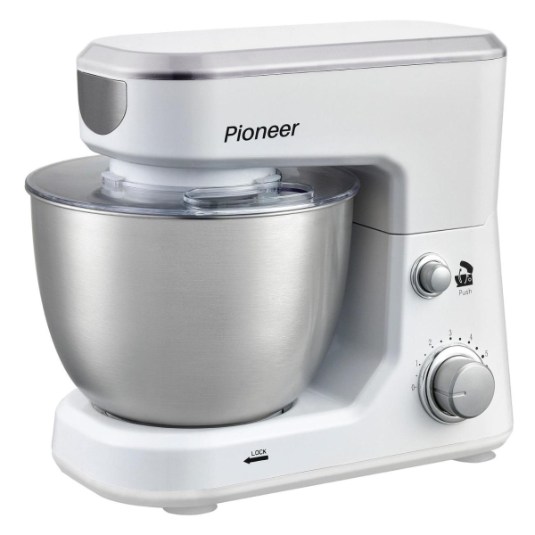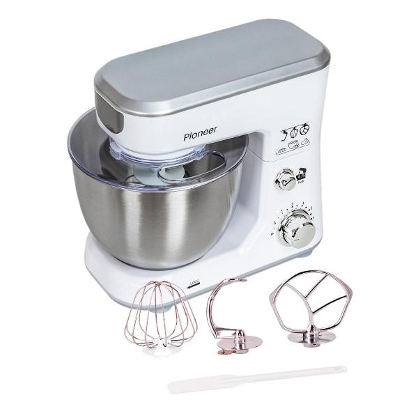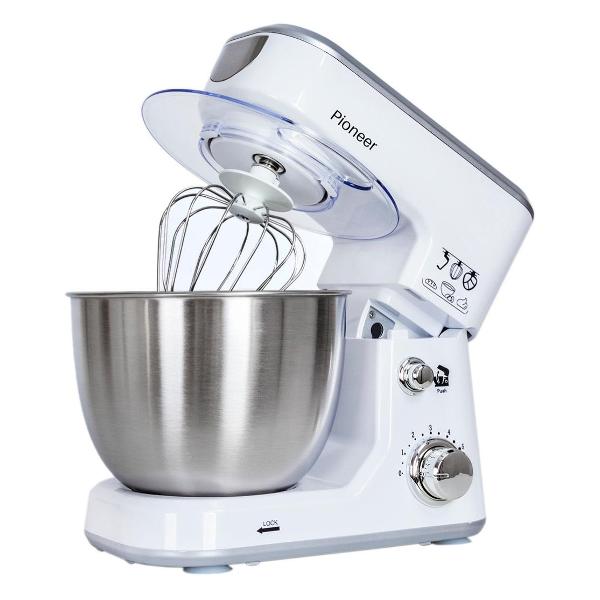 Миксер Pioneer MX326 белого цвета с шестью скоростями идет в комплекте с тремя насадками, защитным кожухом и лопаткой для перемешивания. Корпус сделан из пищевого пластика, чаша объемом 4 л и погружная часть — из стали, устойчивой к образованию коррозии. Габариты модели — 24,5х32х35,5 см. Вес изделия — 2,75 кг. Прорезиненные ножки не скользят по поверхности. Устройство оснащено системой защиты от перегревания, функцией плавного запуска двигателя, что позволяет избежать брызг. Способ управления прибором — электронный. Мощность — 0,55 кВт. Длина шнура — 1 м.