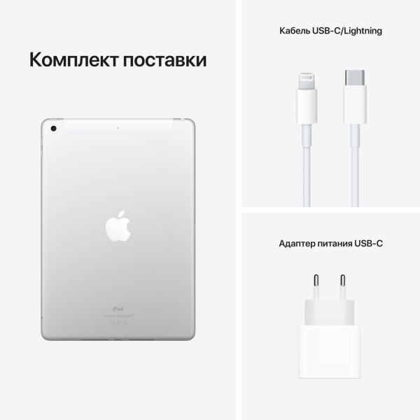 Планшет Apple iPad 10.2 Wi-Fi+Cell — серебристая модель со встроенной памятью 256 Гб и процессором A13 Bionic. 10,2-дюймовый дисплей обладает разрешением 1620х2160 пикселей. В основе его работы лежит матрица IPS. Она обеспечивает широкие углы обзора, высокую контрастность и реалистичную цветопередачу. Есть поддержка Apple Pencil (1 gen.) для тех, кто увлекается графическим дизайном. В качестве операционной системы используется iPadOS. Спутниковая навигация ГЛОНАСС и GPS позволит определить текущее местоположение с точностью до нескольких метров.