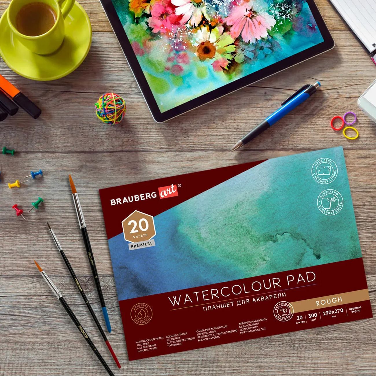 Планшет для акварели с профессиональной импортной бумагой плотностью 300 г/м2 из 100% ХЛОПКА. Блок проклеен с 4-х сторон, надежно фиксирует рабочий лист. Для более легкого отделения листа с готовой работой предусмотрен непроклеенный уголок (рекомендуется отделять листы канцелярским ножом, мастихином). Планшет оснащен жесткой подложкой, обеспечивающей твердую и ровную основу. Прекрасно подойдет как для мокрой акварели (по-сырому), так и для классической техники акварели. При впитывании воды бумага не деформируется, что обеспечивает равномерную и плавную заливку, стойка к стиранию, скоблению. Идеально держит цвет, тона останутся выразительными и экспрессивными. Без кислот, что гарантирует долговечность ваших творений! Бумага BRAUBERG ART PREMIERE подойдет как для начинающих любителей акварельной живописи, так и для выражения самых смелых идей профессионалов.