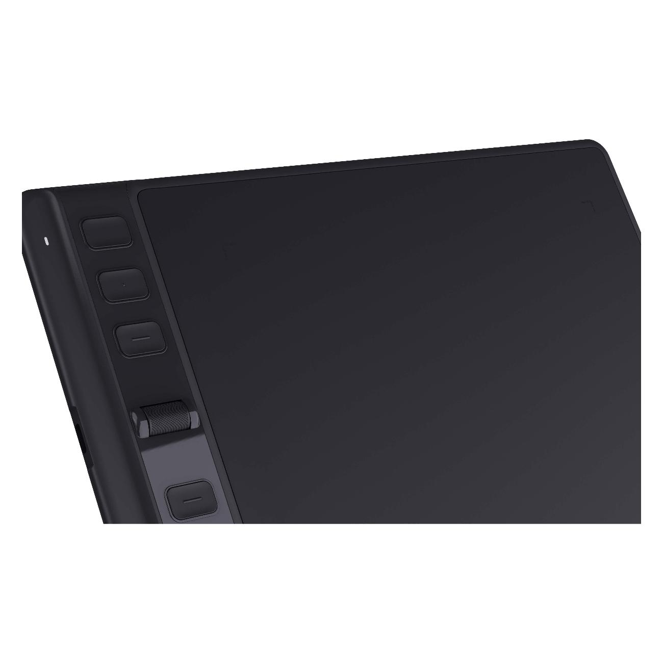 Планшет Huion H641P в корпусе цвета Black обладает разрешением 5080 LPI. Размер рабочей области составляет 16х10 см. Устройство снабжено шестью программируемыми клавишами, скроллером, держателем для пера. Корпус сделан из пластика. Девайс подключается к компьютеру с помощью USB-кабеля.