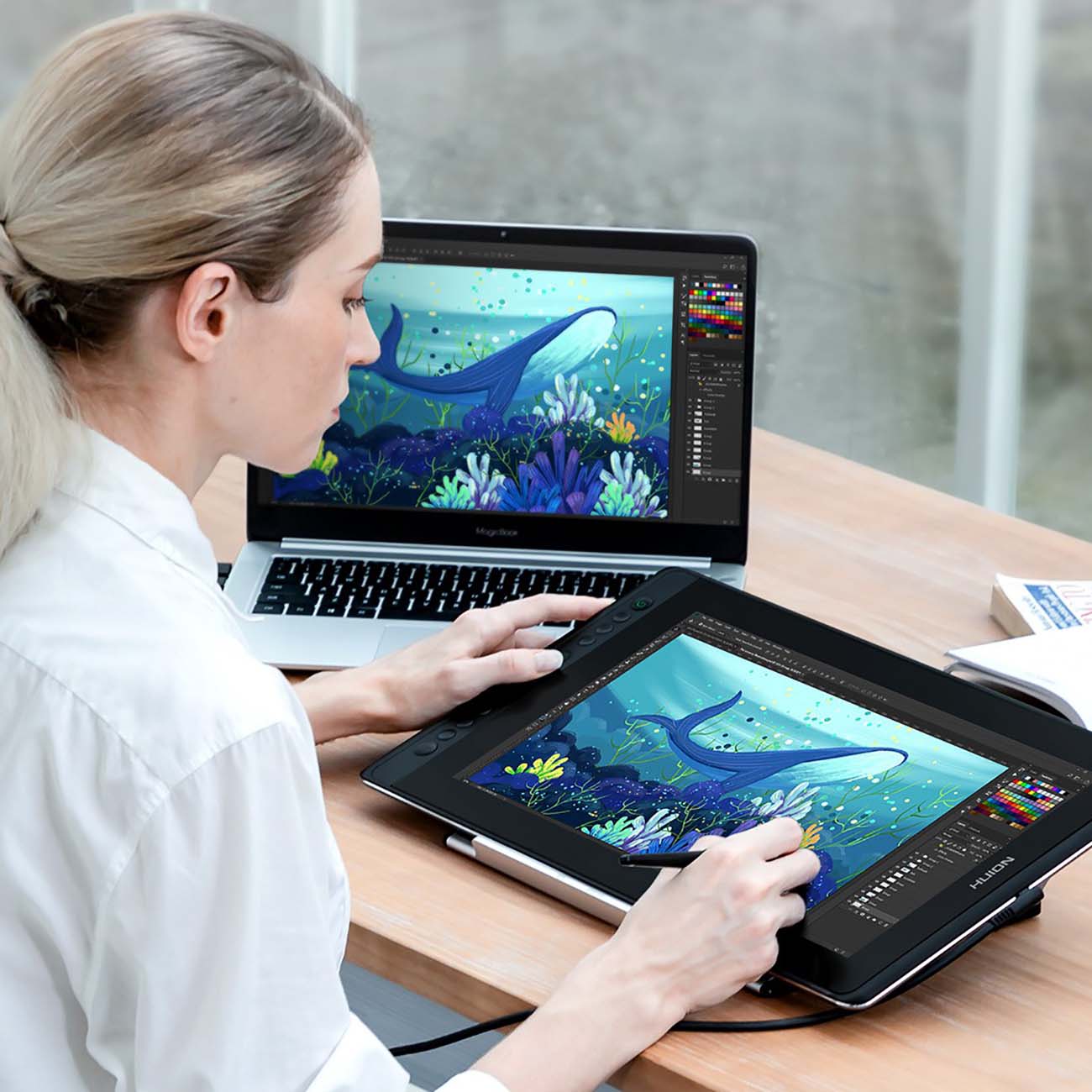 Классный графический планшет в своем ценовом сегменте. Я несколько лет занимаюсь рисованием профессионально, часто работаю на свежем воздухе, поэтому для меня был важен хороший экран и небольшой вес. Подбирал себе графический планшет долго, изучал характеристики, отзывы, выбирал среди нескольких вариантов и остановился на этом. Во-первых, в этой моделе хорошее антибликовое покрытие. Во-вторых, очень удобный стилус, который комфортно помещается в руке и реагирует на малейшее изменение давления. Работать с ним одно удовольствие. А еще планшет очень мобилен благодаря своему относительно небольшому весу. Так что этот планшет для меня стал настоящей находкой, покупкой доволен на все 100.