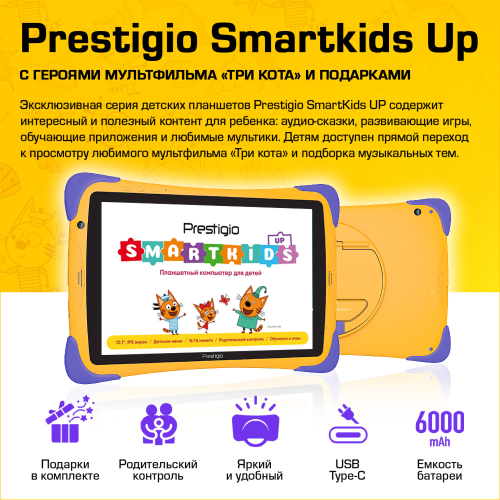 Планшет Prestigio SmartKids Up 10.1'' создан для малышей. Он поможет им развиваться и полноценно обучаться в весёлой игровой форме.