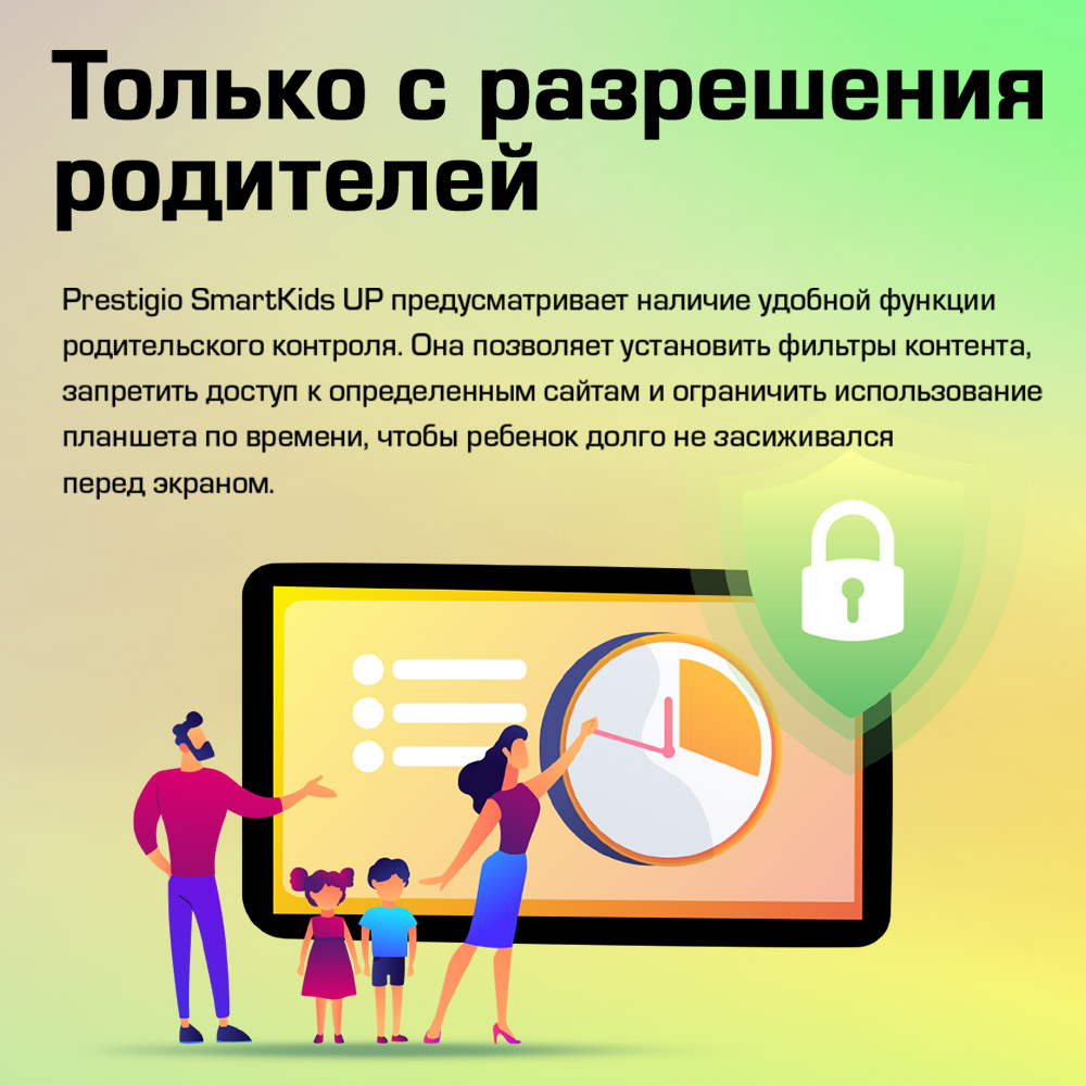 Производитель заложил специальный развивающий контент – простые и интересные «обучалки», «развивашки». Аудио-сказки, любимые мультфильмы, музыка и анимация надолго привлекут внимание ребенка. А чтобы он не засиживался за гаджетом, имеется функция родительского контроля. С её помощью можно устанавливать фильтры на скачиваемые файлы, запрещать доступ к некоторым сайтам, ограничивать время использования устройства.