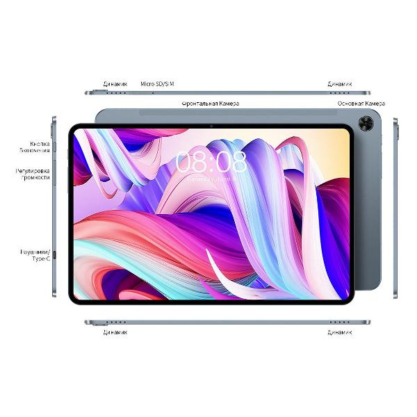 Девайс поддерживает microSD объемом до 256 Гб. Тип оперативной памяти — Android 11. Быстрый запуск программ и высокая производительность обеспечиваются восьмиядерным процессором Tiger T618 от Unisoc — тактовая частота достигает 2 ГГц. Планшет снабжен модулями Bluetooth и Wi-Fi. Поддерживается спутниковая навигация GPS для определения текущего местоположения с максимальной точностью. Интерфейс представлен портом USB-C.