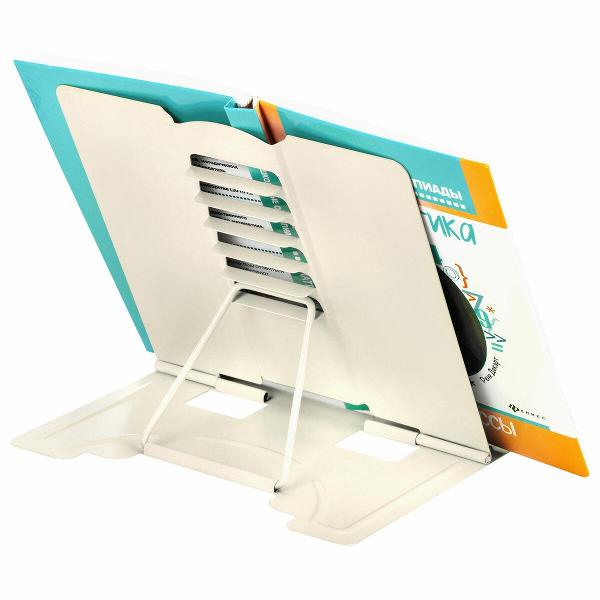 Подставка полностью выполнена из металла, поэтому отлично подойдет для надежной фиксации тяжелых и объемных учебных материалов и книг. Оригинальный дизайн понравится школьнику любого возраста. Регулируемый угол наклона обеспечивает удобство при работе с текстом, облегчает чтение и выполнение домашней работы.