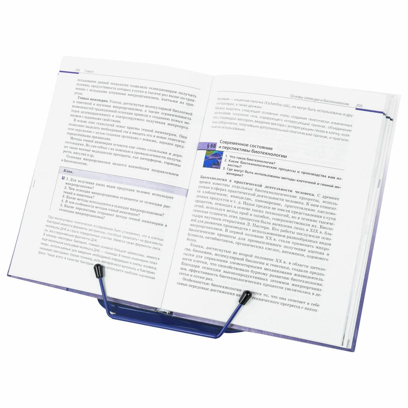 Удобный упор удерживает учебник в вертикальном положении, облегчая чтение и подготовку домашней работы. Компактные размеры и вес подставки позволят разместить ее в любой сумке и взять с собой. Угол наклона регулируется, обеспечивая удобство при работе с текстом. Нижние страницы надежно фиксируются прочным держателем.