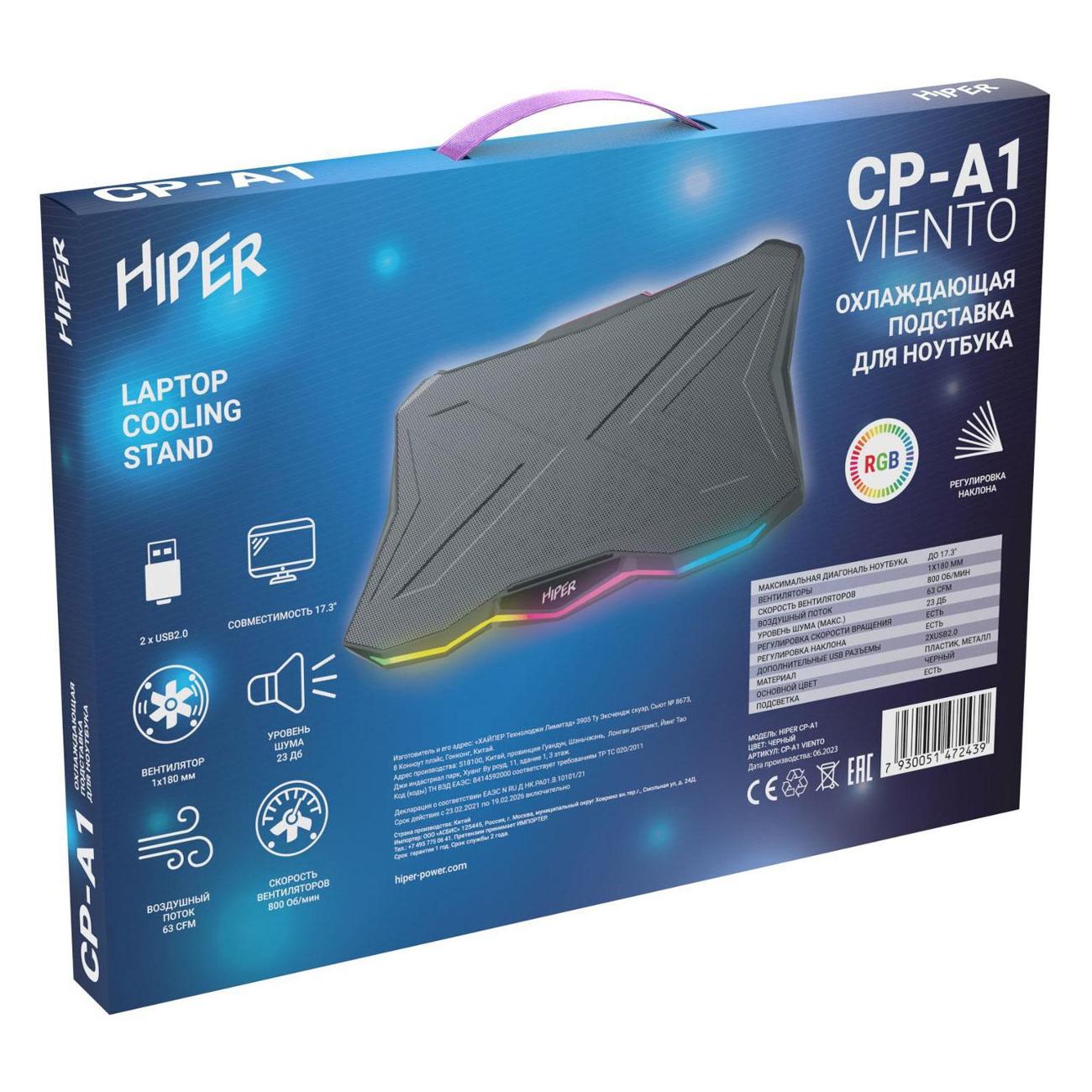 Вы можете купить Подставка для ноутбука HIPER VIENTO CP-A1 в магазинах М.Видео по доступной цене. Подставка для ноутбука HIPER VIENTO CP-A1: подробное описание, фото и отзывы реальных покупателей, характеристики, возможность скачать инструкции и подобрать аксессуары.