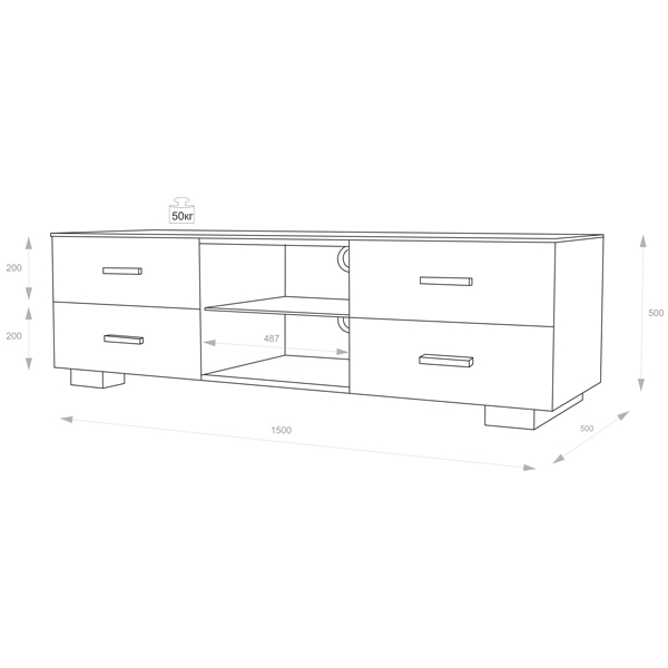 Дополнительные полки и выдвижные ящики позволяют устанавливать различную технику, например, DVD-плеер или ресивер, а также хранить коллекции фильмов на дисках. Кабель-канал даёт возможность скрытно разместить провода.