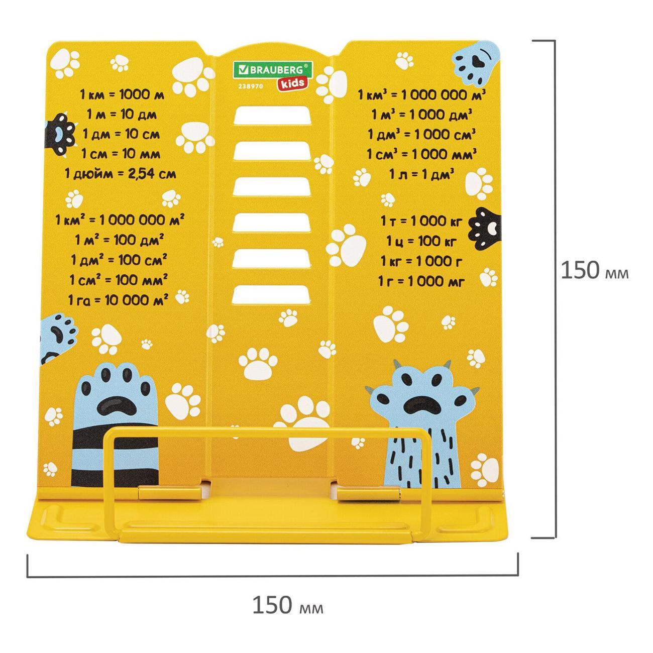Подставка полностью выполнена из металла, поэтому отлично подойдет для надежной фиксации тяжелых и объемных учебных материалов и книг. Оригинальный дизайн понравится школьнику любого возраста, единицы измерения будут полезны в учебе. Регулируемый угол наклона обеспечивает удобство при работе с текстом, облегчает чтение и выполнение домашней работы.