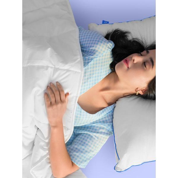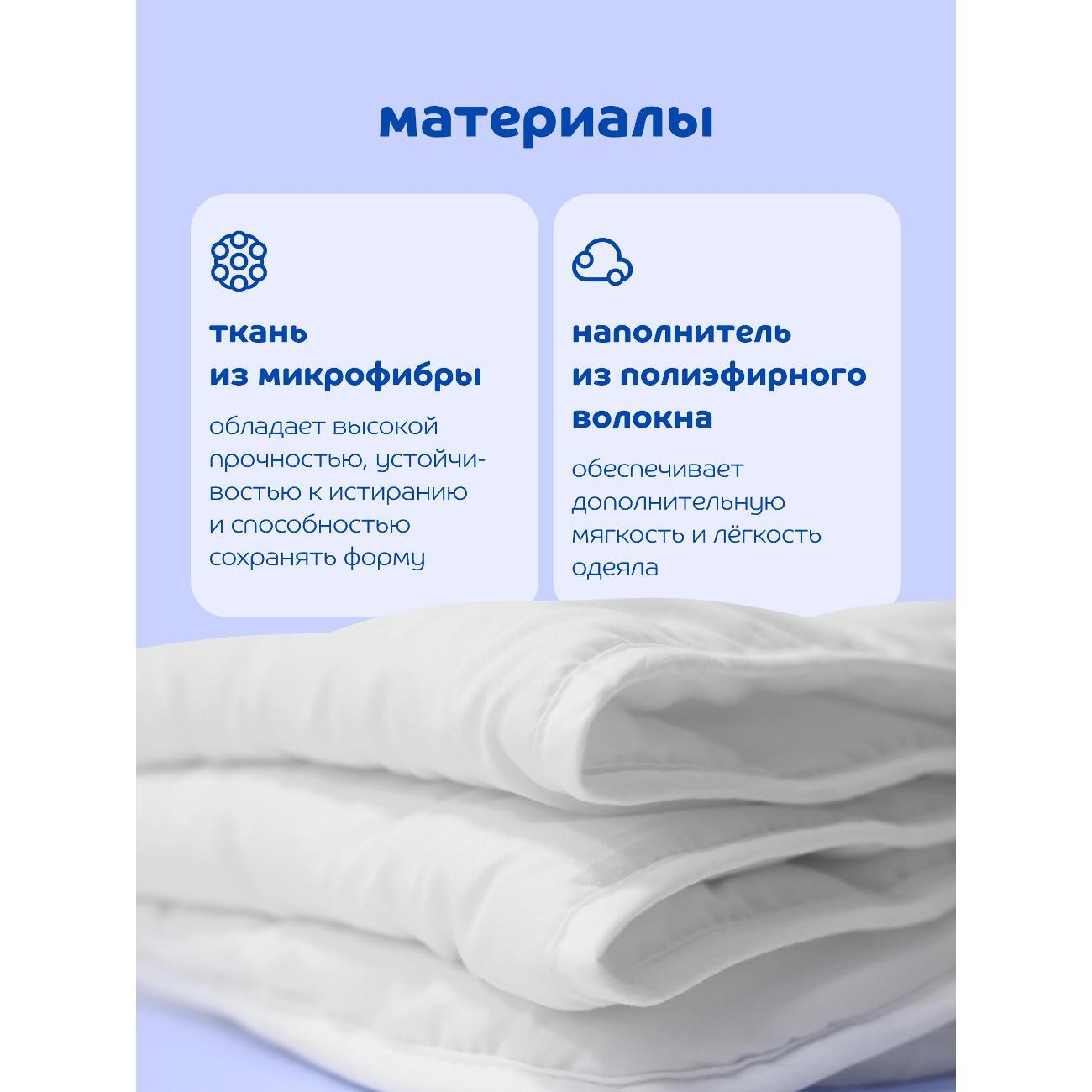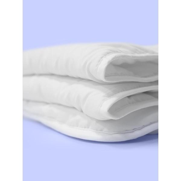 Наполнитель одеяла — полиэфирное волокно. Структура наполнителя обеспечивает легкость, объем и терморегулирующие свойства для комфортного использования в теплое и прохладное время года. Наполнитель обладает гипоаллергенными свойствами.