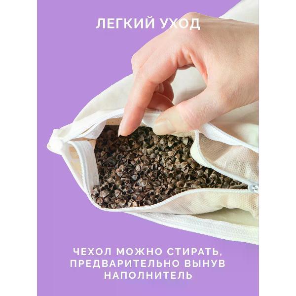 Гречневая лузга – это оболочка, окружающая семена гречихи, мягкая и хрупкая. Такая подушка легко адаптируется по форме головы, обеспечивая правильную поддержку в области шейных позвонков, создаёт эффект точечного массажа
