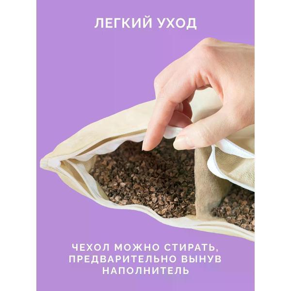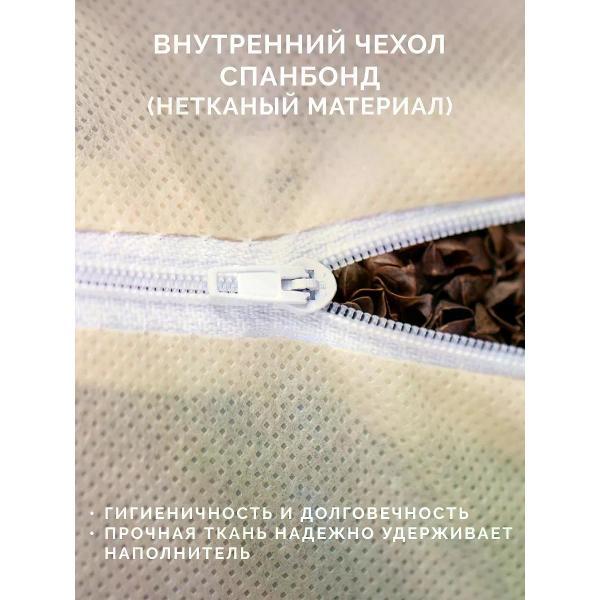 Гречневая лузга – это оболочка, окружающая семена гречихи, мягкая и хрупкая. Такая подушка легко адаптируется по форме головы, обеспечивая правильную поддержку в области шейных позвонков, создаёт эффект точечного массажа