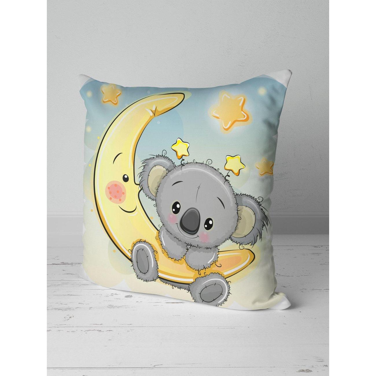 Рисунок: Милая коала сидит на улыбающейся луне среди звёзд