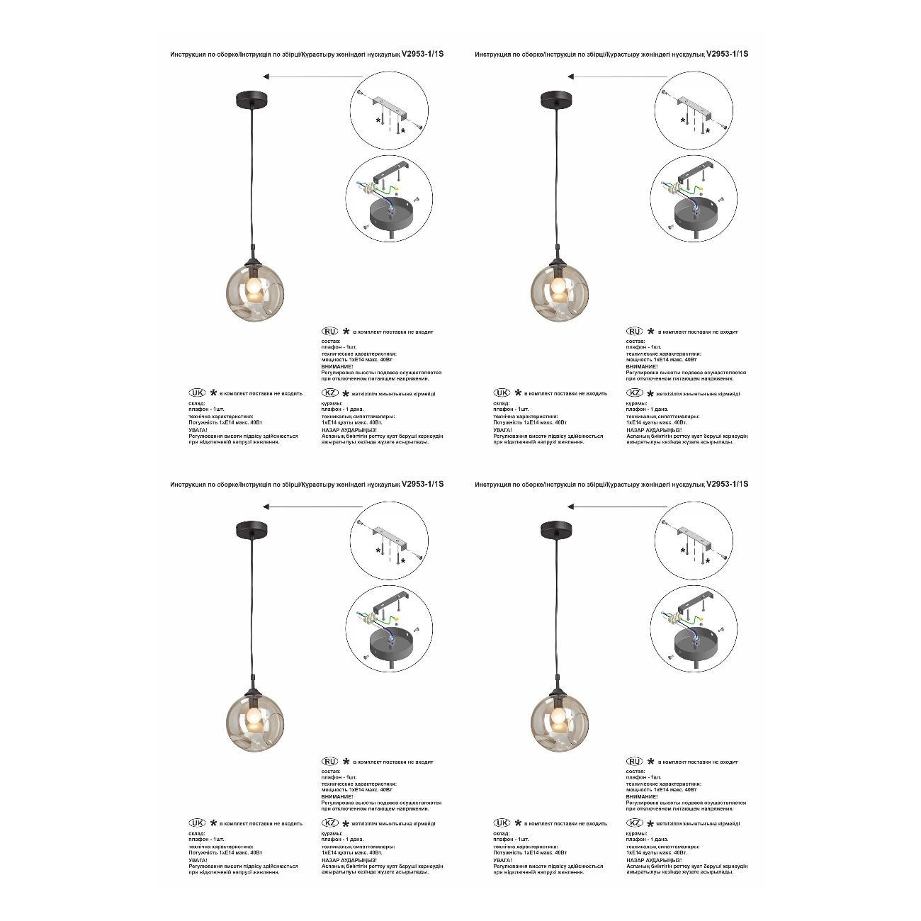 Подвес Vitaluce V2953-1/1S оснащен одной лампой с цоколем Е14 и мощностью 40 Вт. Площадь освещения составляет 3 кв.м., что позволяет равномерно осветить помещение.