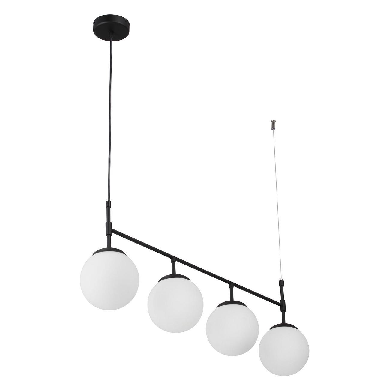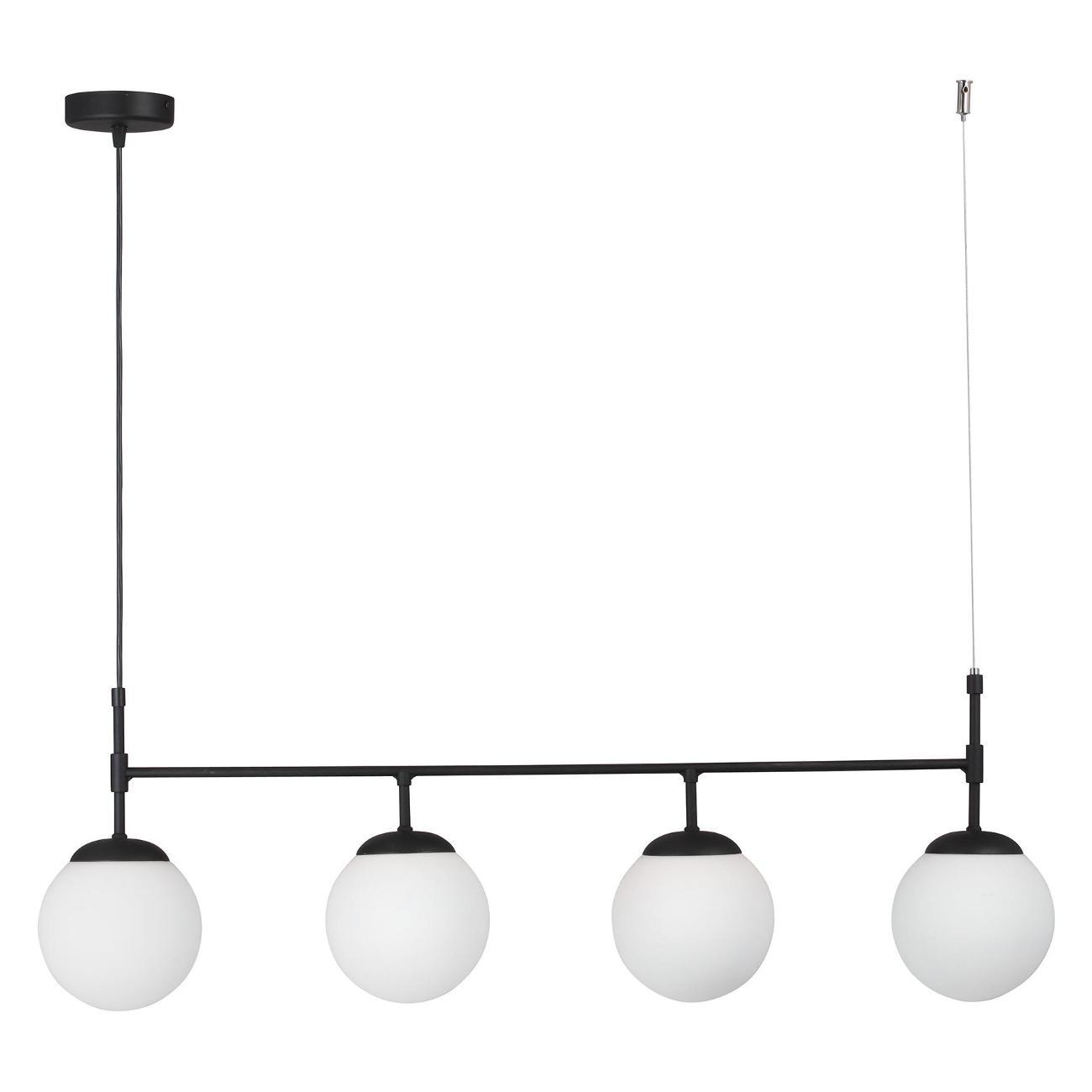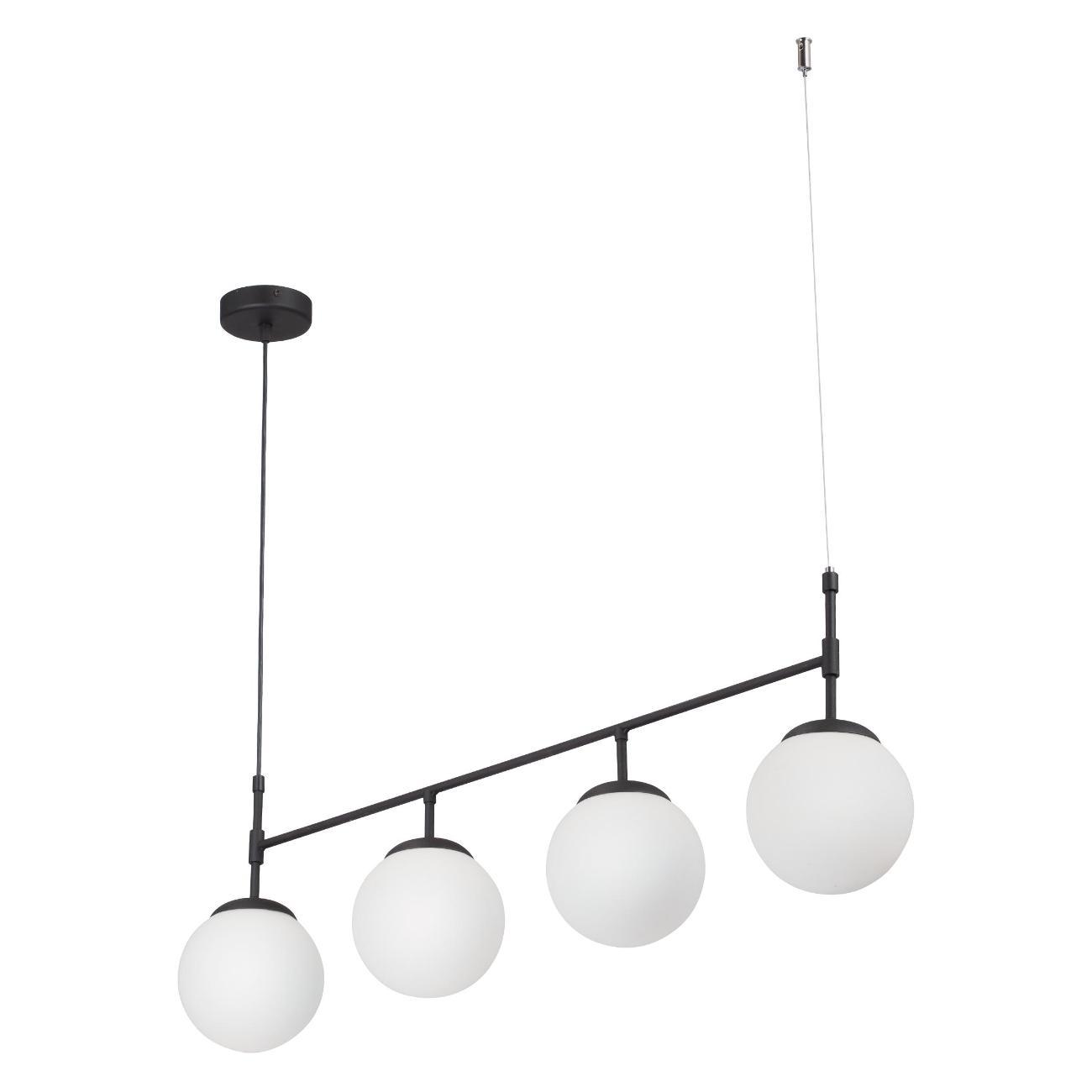 Арматура люстры изготовлена из металла и окрашена в черный матовый цвет. Плафоны выполнены из стекла и имеют белый цвет.