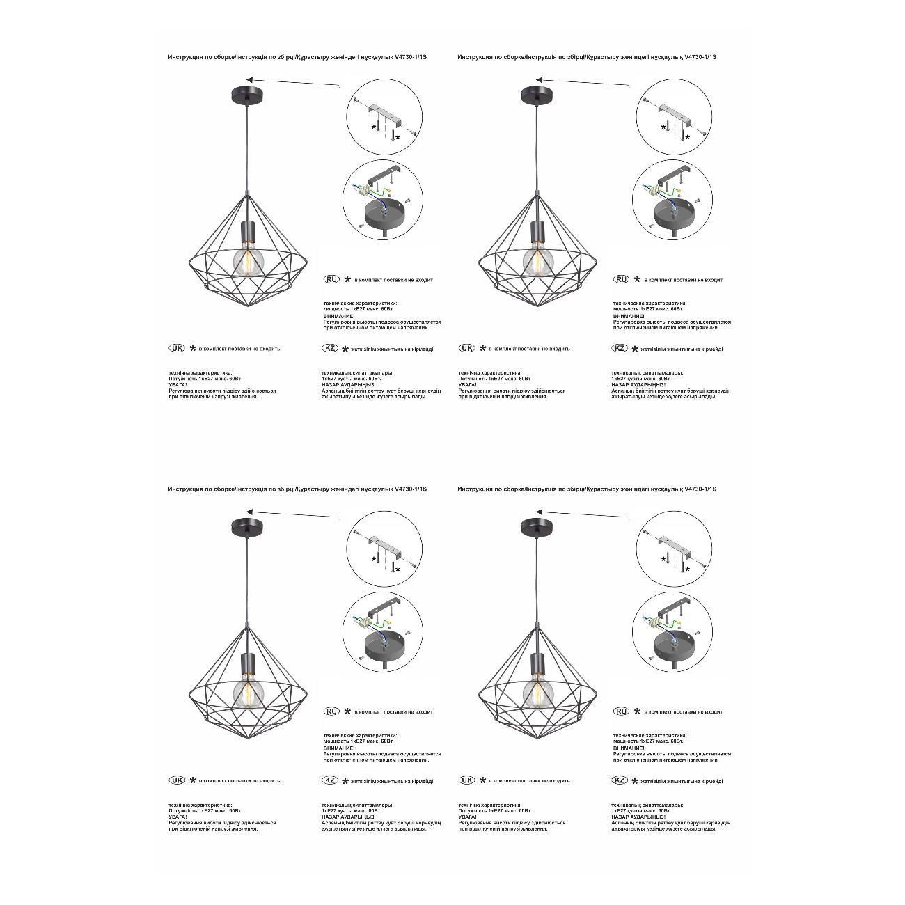 Подвес V4730-1/1S имеет регулируемое крепление, что позволяет легко настроить его высоту в зависимости от ваших предпочтений.