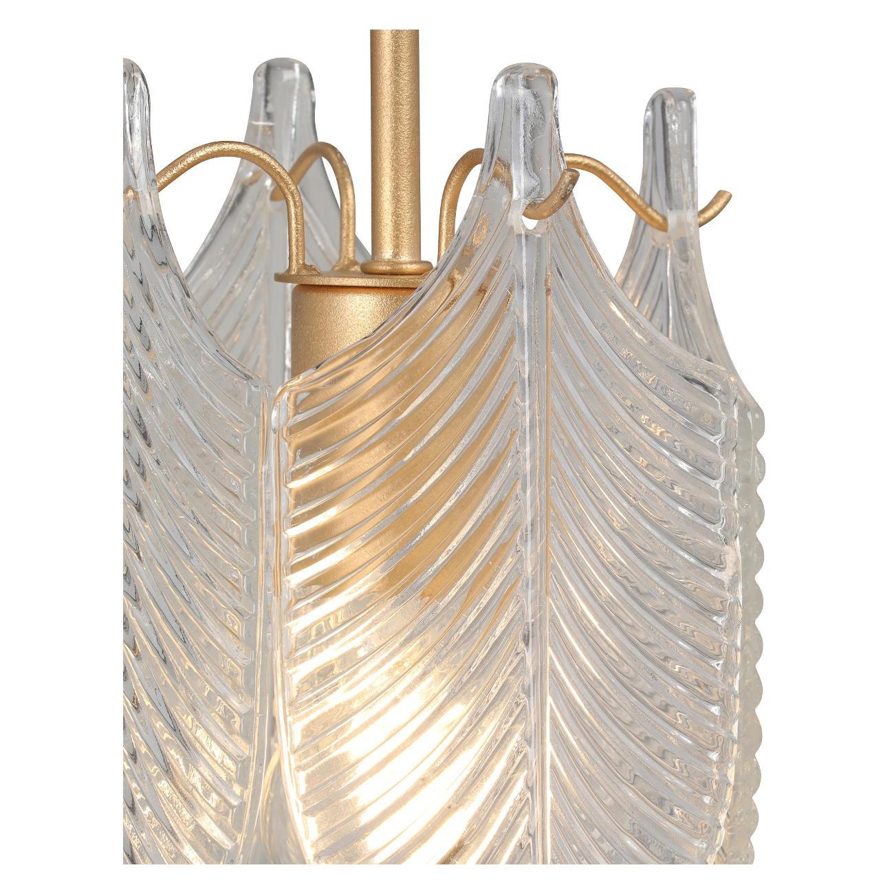 Люстра выполнена в золотом цвете, что придает ей роскошный и элегантный вид.