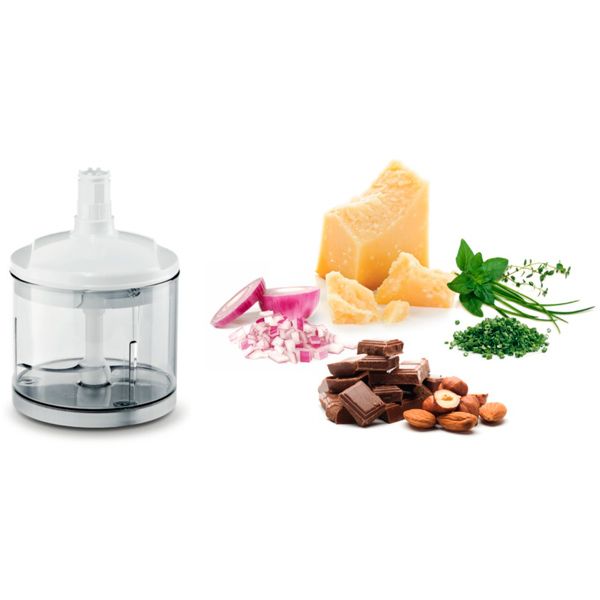Погружной блендер Bosch ErgoMixx MSM66155 мощностью 600 Вт снабжен 12 скоростями работы и турборежимом. Прибор способен измельчать даже самые твердые продукты (орехи, лед), предусмотрены две насадки: погружная деталь (нержавеющая сталь) и чаша-измельчитель с ножом (нержавеющая сталь). Последняя емкость объемом 450 мл изготовлена из пищевого пластика. Прилагается мерный стакан объемом 600 мл.
