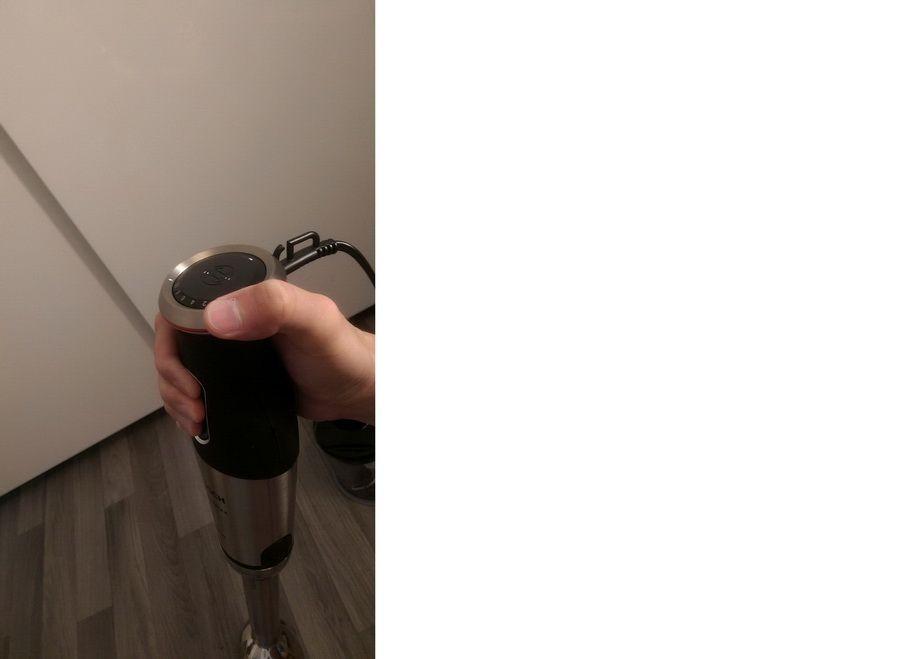 Мощный, 12 скоростей + турбо, качество изготовления, красивый, отличная комплектация - венчик, измельчитель, мерный стакан - все с крышками, есть возможность докупить что-то еще, хотя это и не очевидная информация, нужно покопаться на сайте, чтоб понять. Измельчает все в абсолютно однородную массу. Занимает мало места - компактней кухонной машины, если нужно сделать что-то в небольших объемах, удобней использовать его, держа его под рукой, чем доставать машину.