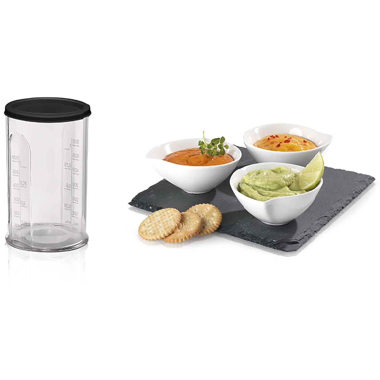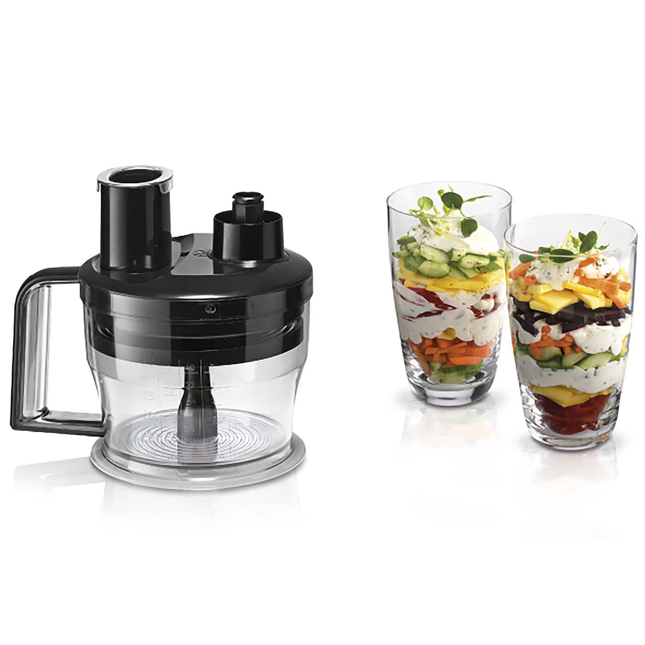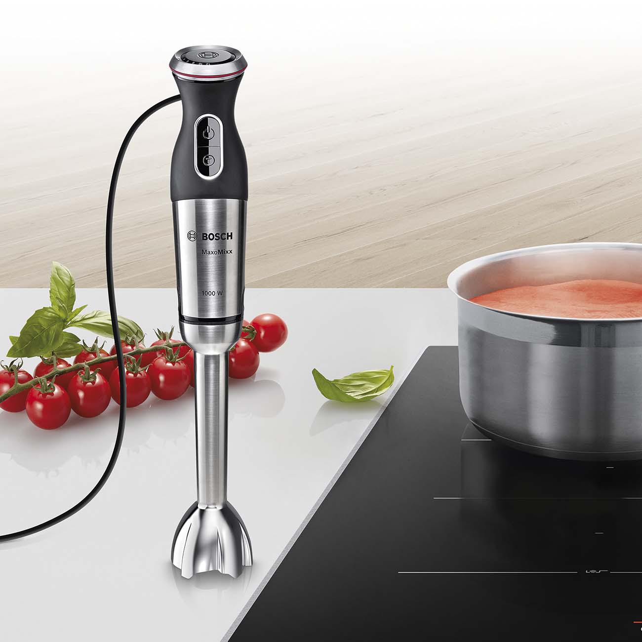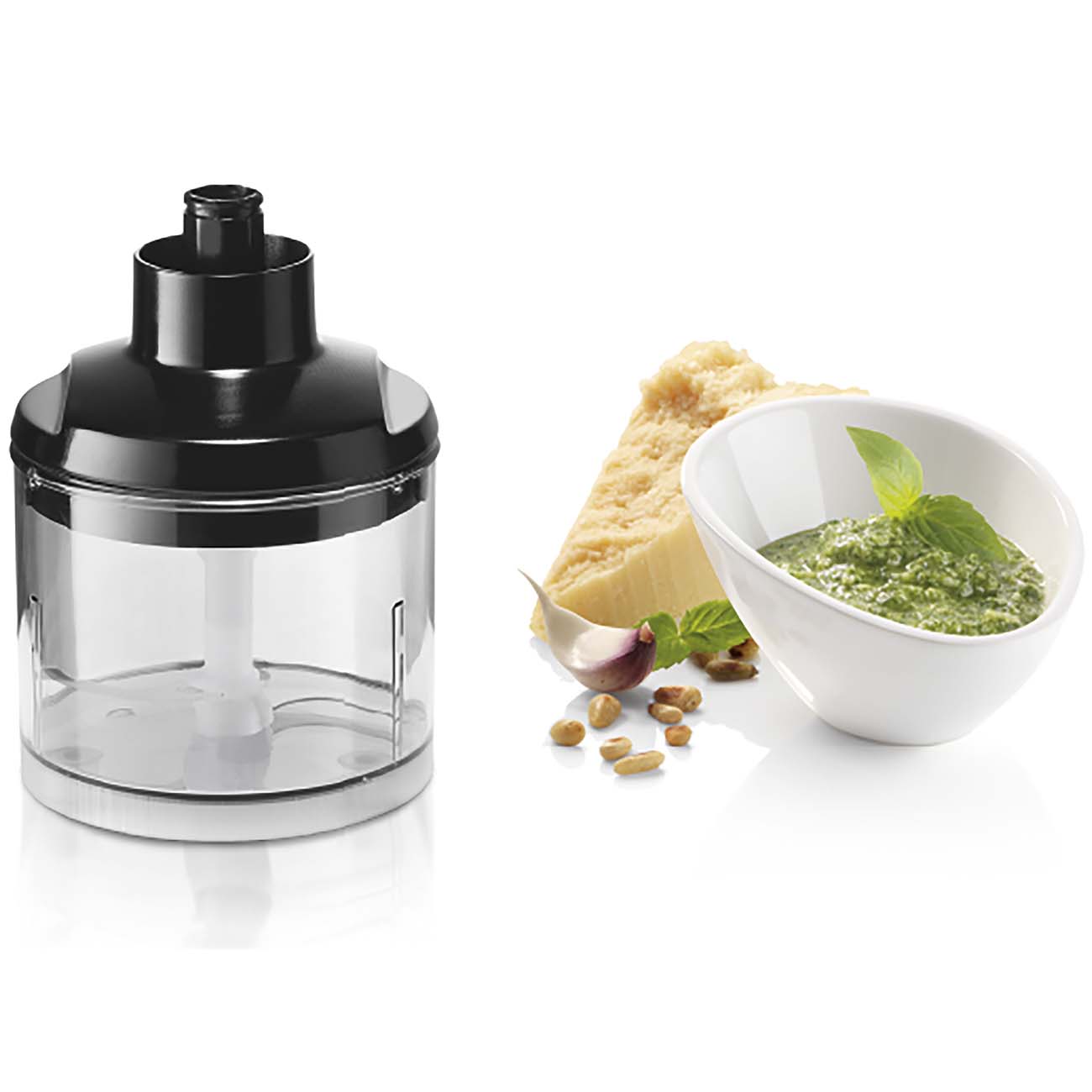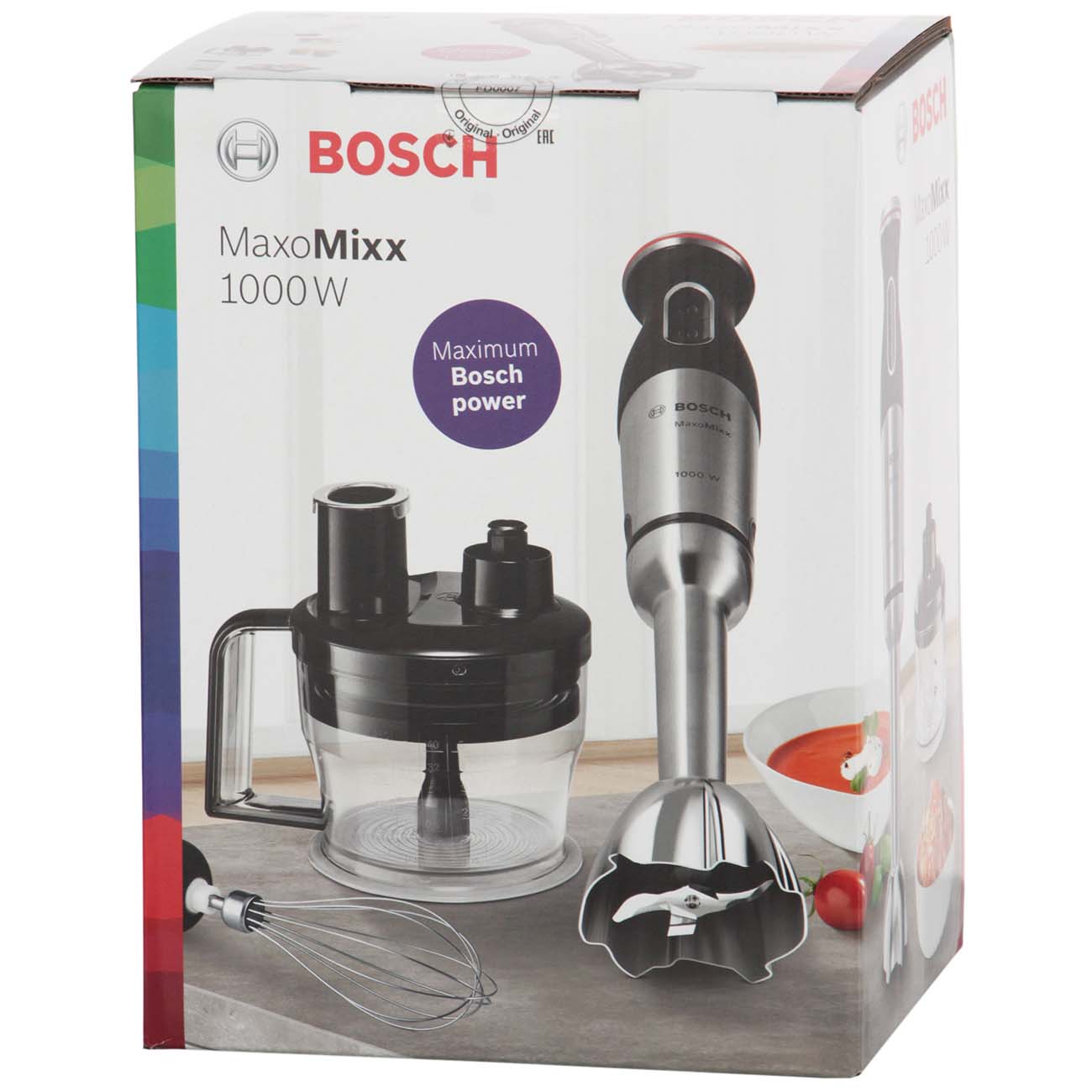 Погружной блендер Bosch ErgoMixx MS8CM6190 – надёжный кухонный помощник, с которым приготовление многих блюд будет отнимать меньше сил и времени. Благодаря мощному 1000-ваттному мотору он за считаные минуты измельчает, шинкует, смешивает, взбивает, замешивает тесто. Для этого в комплект входят комбайн, венчик и чоппер. А точно рассчитать количество ингредиентов поможет мерный стакан.