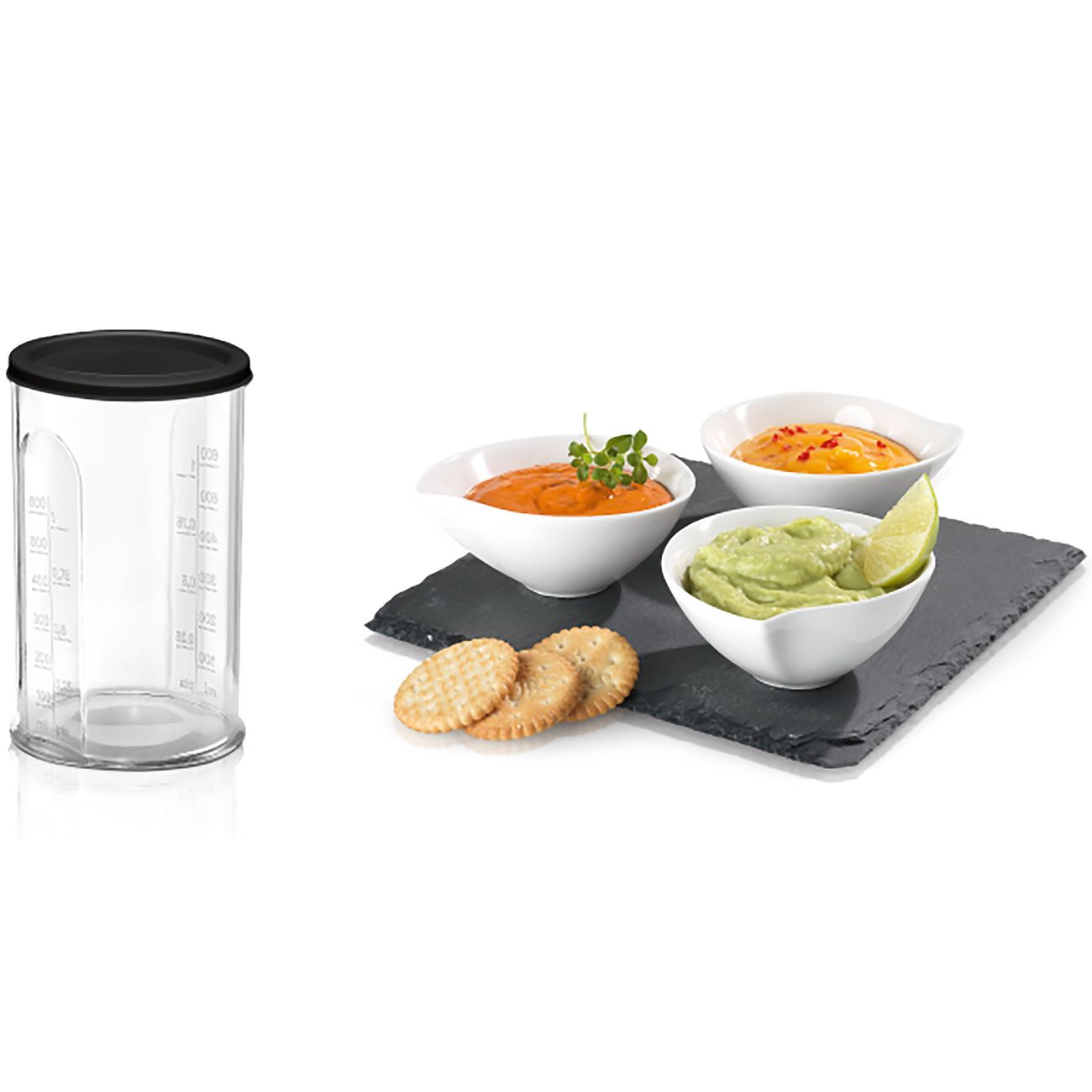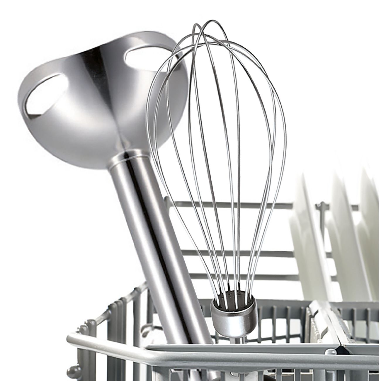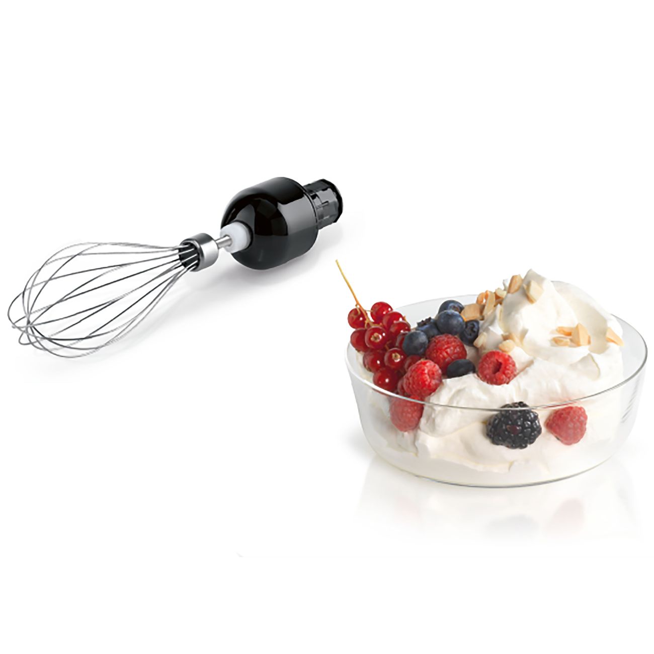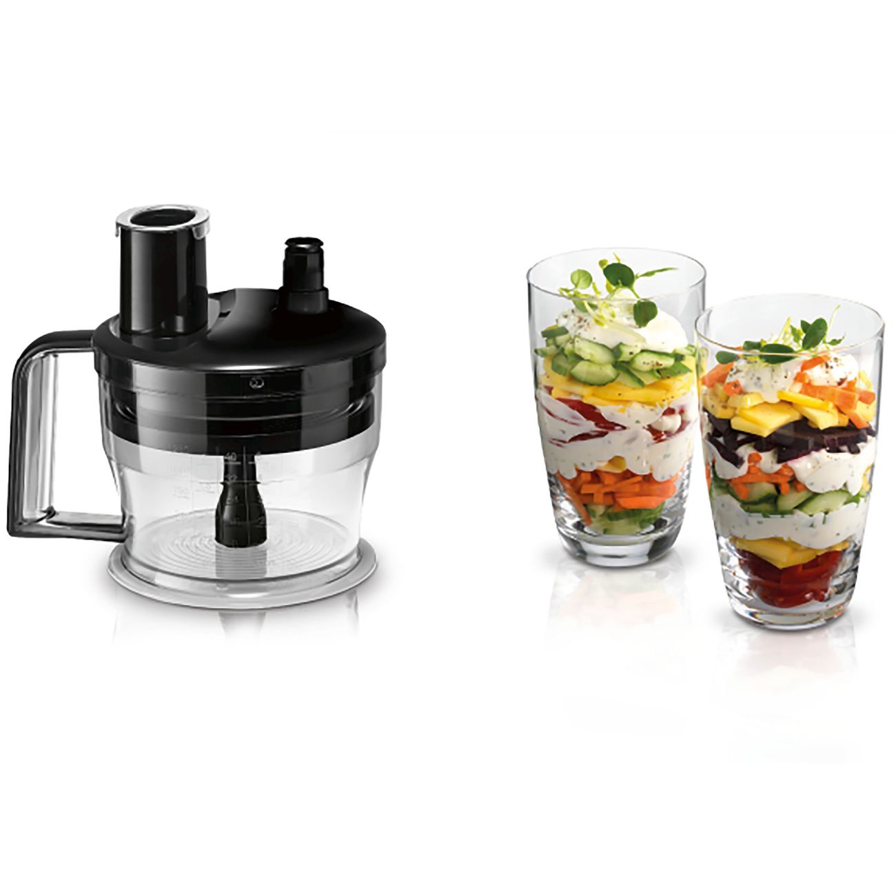 Мой старый блендер данной марки отработал 7 лет, после чего отправился на дачу. Покупая новый, другие фирмы даже не рассматривала. в комплекте есть погружная насадка, измельчитель,шинковки, венчик и удобный стакан с крышкой. Готовлю с ним все - соусы, взбивают тесто, измельчаю мясо и рыбу для котлет, натираю овощи для зажарки, даже орешки перемолол без труда. Ручка очень удобно лежит в руке и не скользит. Пластик очень качественный, не окрашивается от свелы и томатов. есть много скоростей работы. Погружная деталь выполнена из металла - пластиковые очень часто ломаются и теряют внешний вид. Рекомендую к покупке!