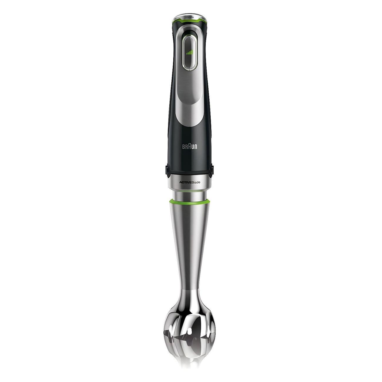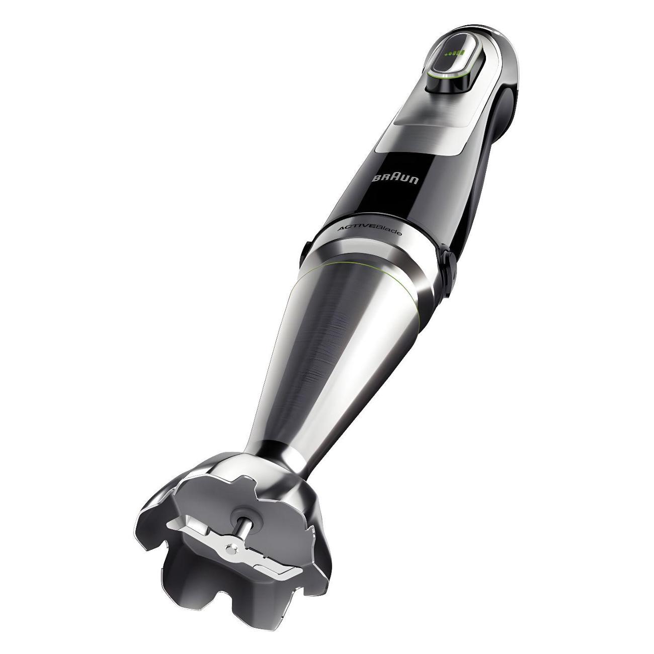 Погружной блендер Braun MQ 9138 XI — модель в пластиковом корпусе с погружной частью из нержавеющей стали высокого качества. Ручка эргономичной формы обеспечивает надежный хват и исключает соскальзывание. Предусмотрена поддержка технологии Active Blade, которая гарантирует движение лезвий по направлению вверх-вниз, благодаря чему достигается быстрое измельчение твердых ингредиентов, включая лед. Устройство оснащено тремя скоростными режимами, включая «Турбо» и импульсный, которые можно плавно регулировать с помощью механических кнопок.