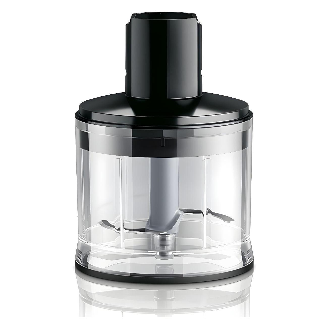 Режим «Десерт» дает возможность быстро взбить жидкое тесто для приготовления сладкой выпечки. В комплекте поставляются три насадки, включая стандартную, венчик и для колки льда. Измельчитель объемом 500 мл произведен из износостойкого пластика, который не подвержен появлению деформаций. Скорость вращения насадок во время работы не превышает 15000 об/мин.